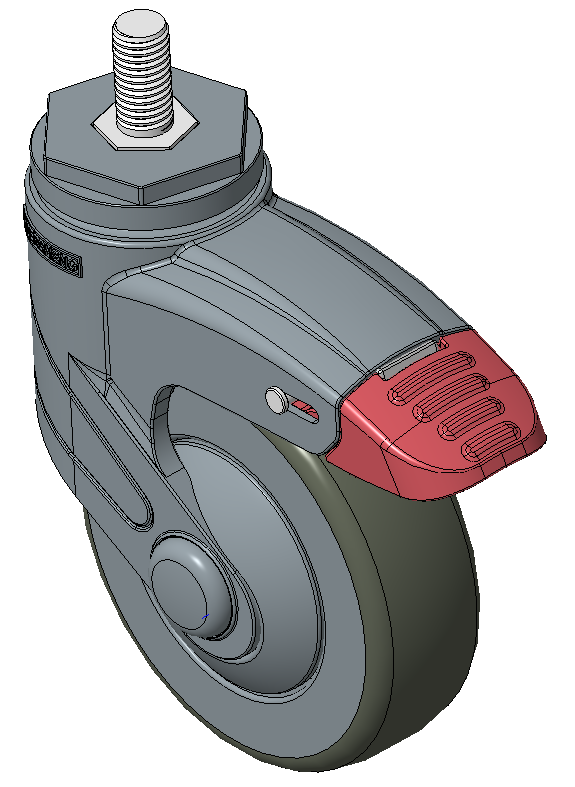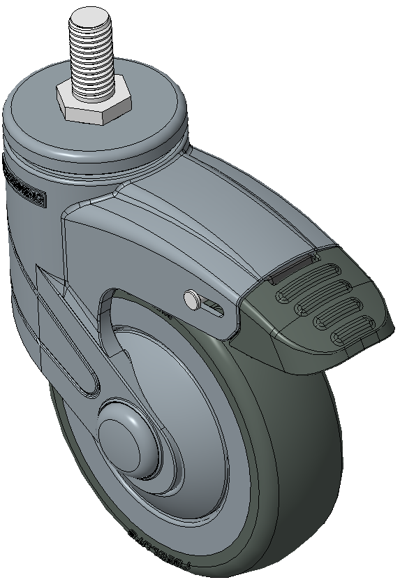 Casters with a Total Brake and With locking system. Threaded Stem lock with blue-gray finish.