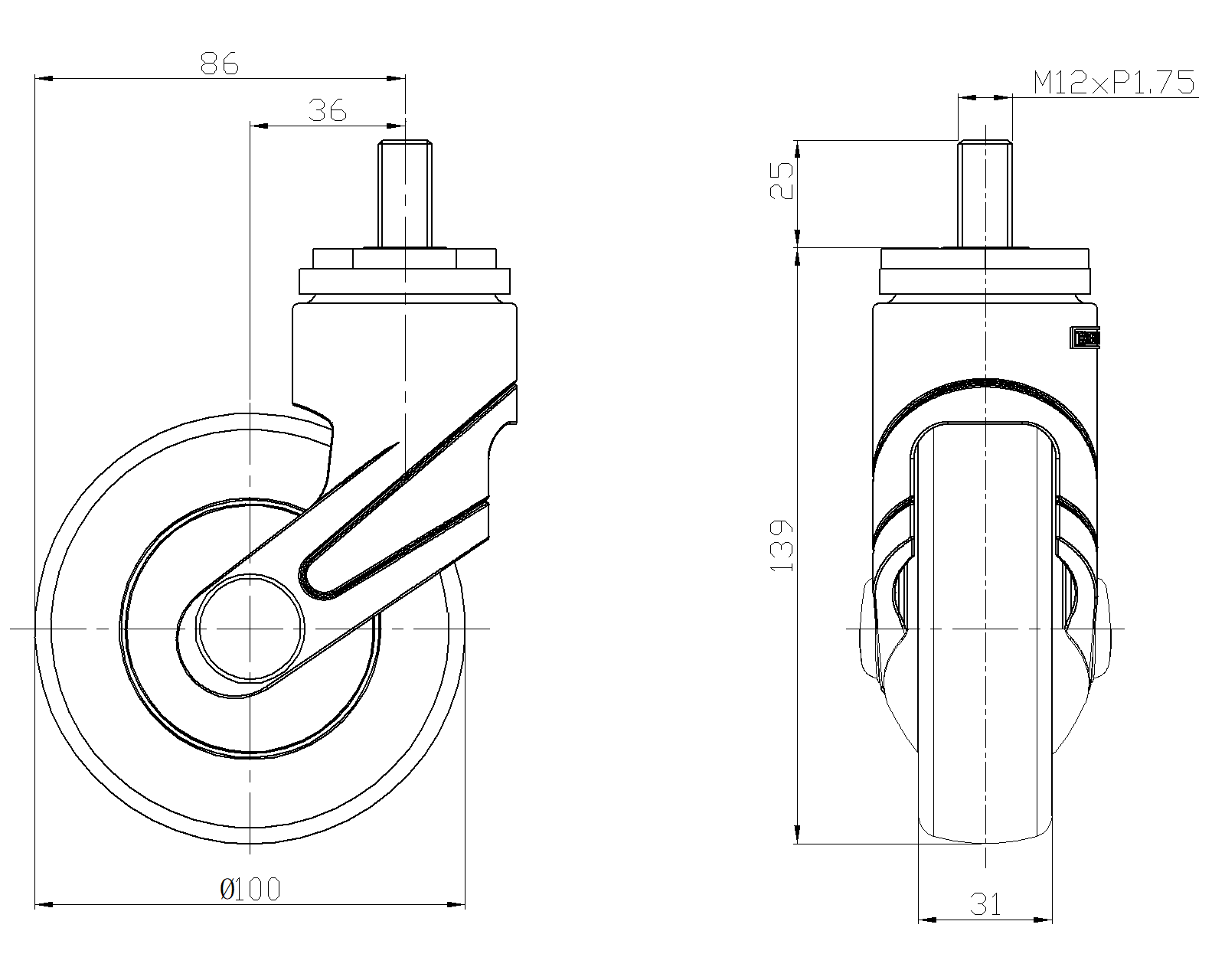 Wheel tread: Thermoplastic rubber elastomer (TPR) Wheel Center: Made of high-quality impact-resistant polypropylene Drawings are for reference only and may differ from the product |