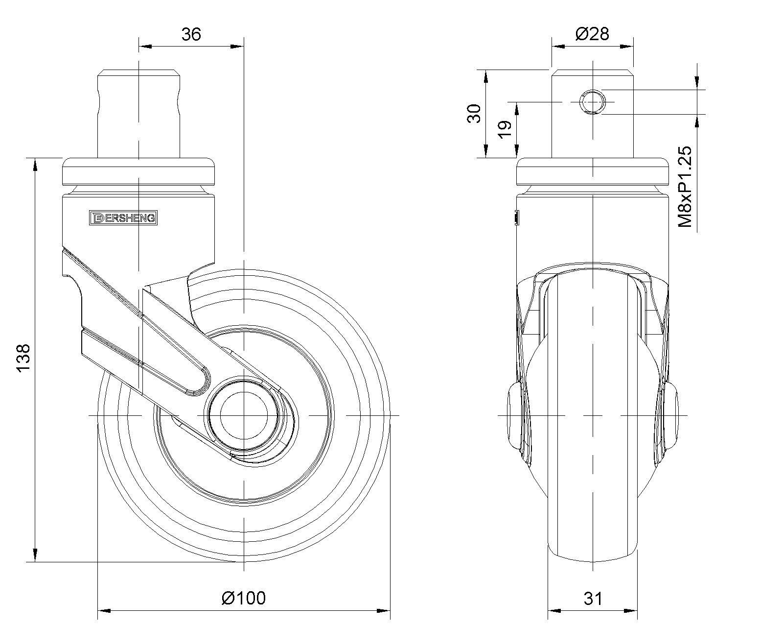| Wheel tread: Thermoplastic rubber elastomer (TPR) Wheel Center: Made of high-quality impact-resistant polypropylene Drawings are for reference only and may differ from the product |