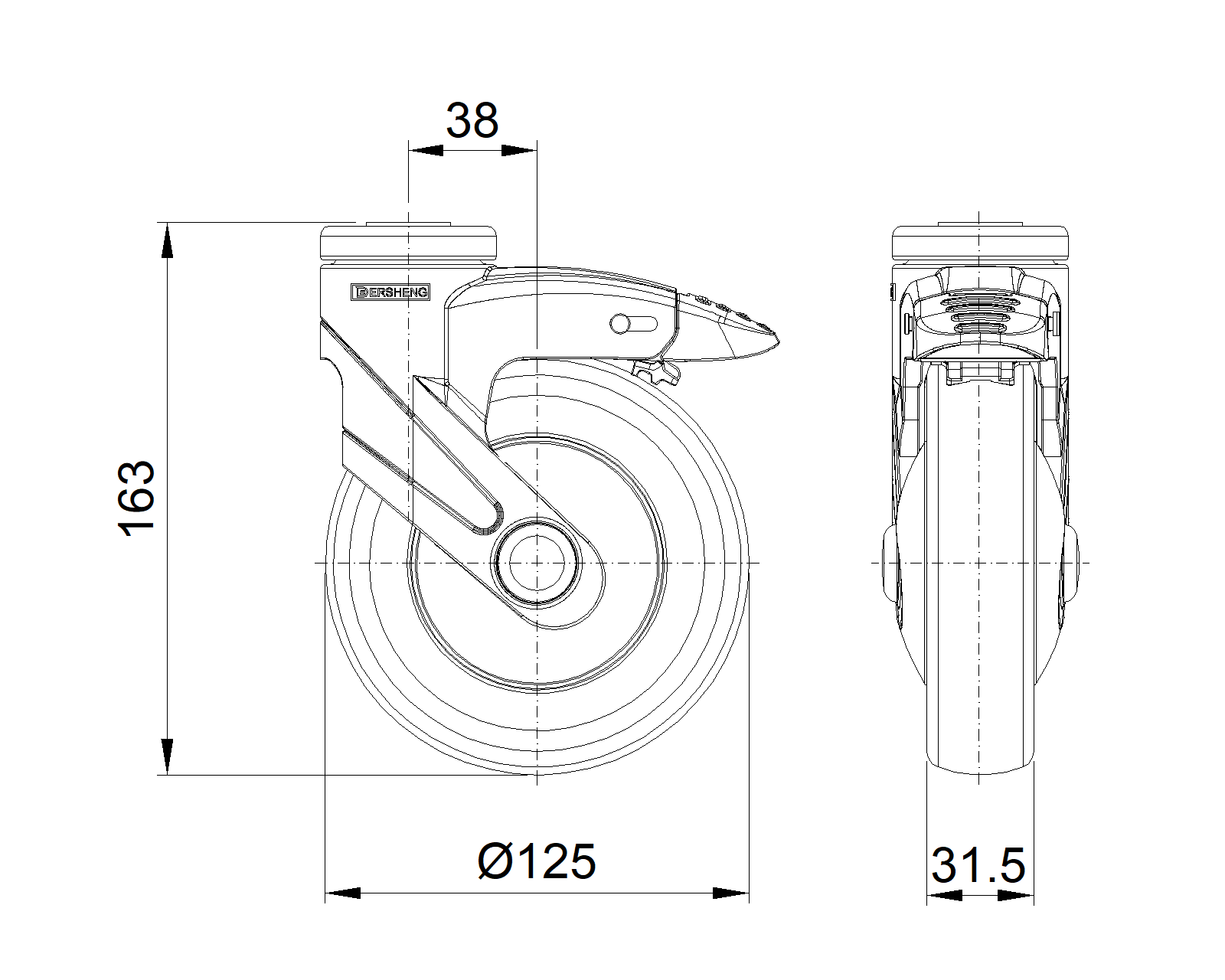| Wheel tread: Thermoplastic rubber elastomer (TPR) Wheel Center: Made of high-quality impact-resistant polypropylene Drawings are for reference only and may differ from the product |