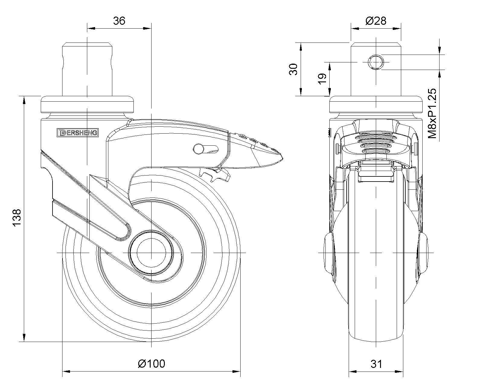 Swivel Caster With Total Brake