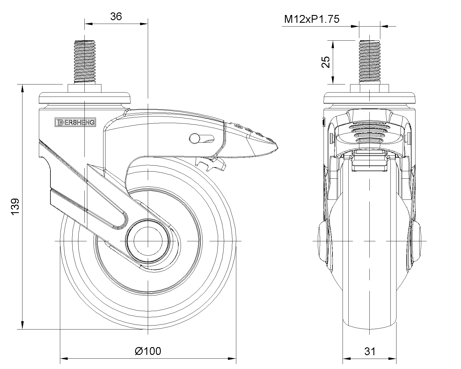 | Wheel tread: Thermoplastic rubber elastomer (TPR) Wheel Center: Made of high-quality impact-resistant polypropylene Drawings are for reference only and may differ from the product |