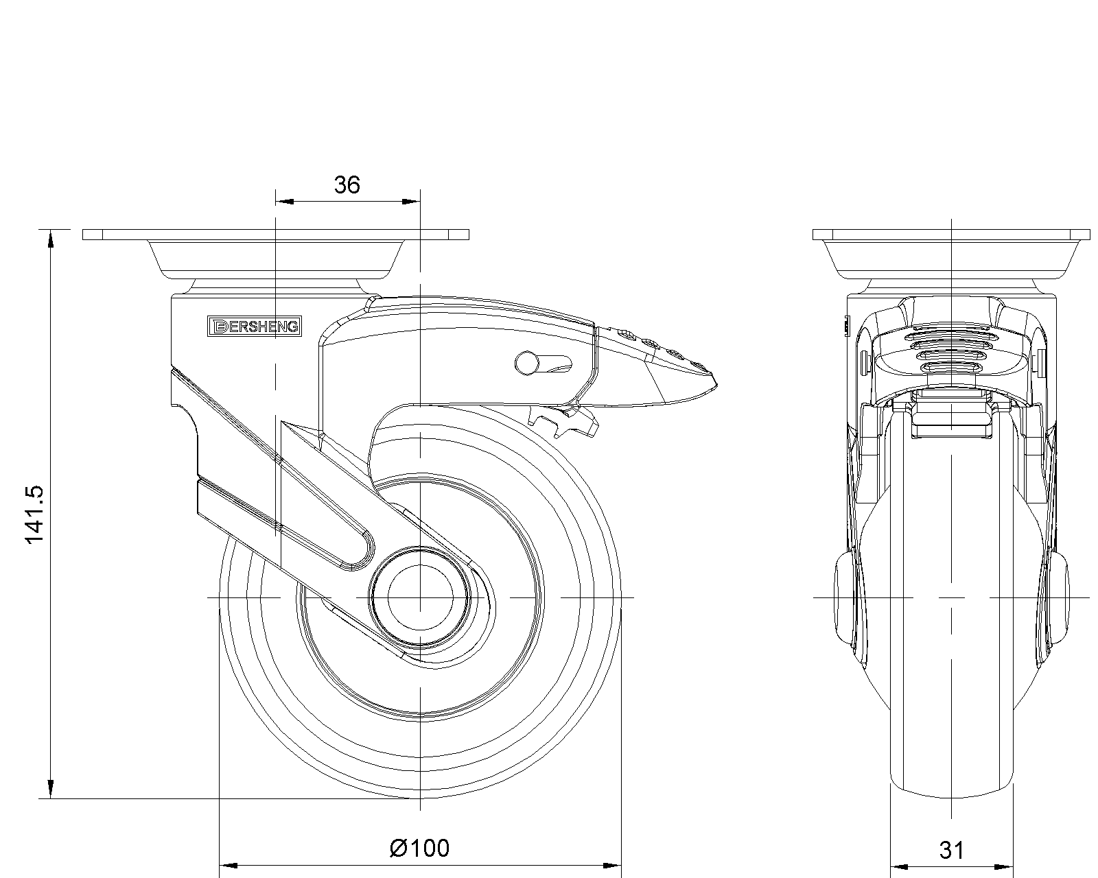 | Wheel tread: Thermoplastic rubber elastomer (TPR) Wheel Center: Made of high-quality impact-resistant polypropylene Drawings are for reference only and may differ from the product |