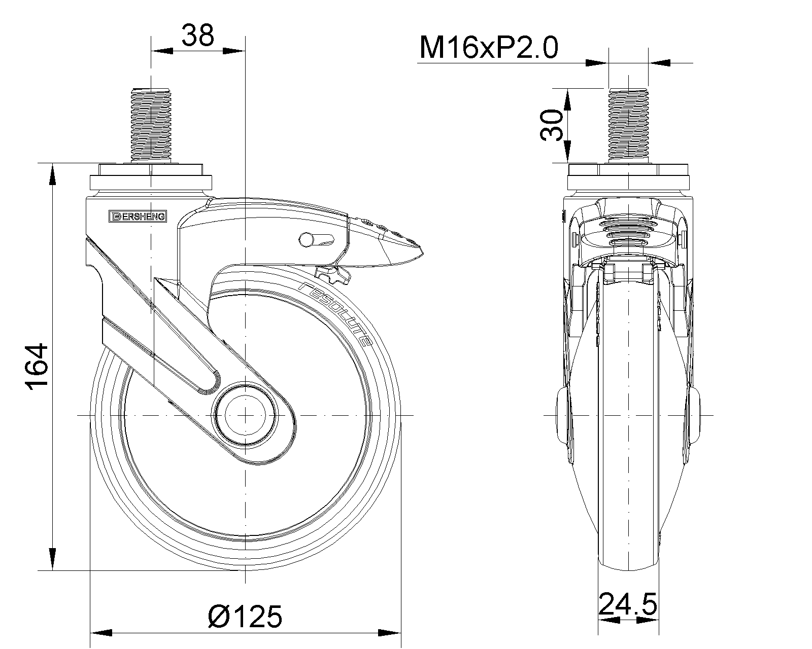 Long double-brake type, With locking system Casters, Threaded Stem M16x30 Pearl-colored legs made of polyamide reinforcement, Threaded Stem installation Rust-proof, Corrosion resistant, Attractive appearance, Economical, and Smooth rotation High-Quality Impact-Resistant Polypropylene Wheel Center, High-Quality Reinforced Polypropylene Rubber (TPR) Wheel Tread Dark gray, wheel-Plain Bearing |