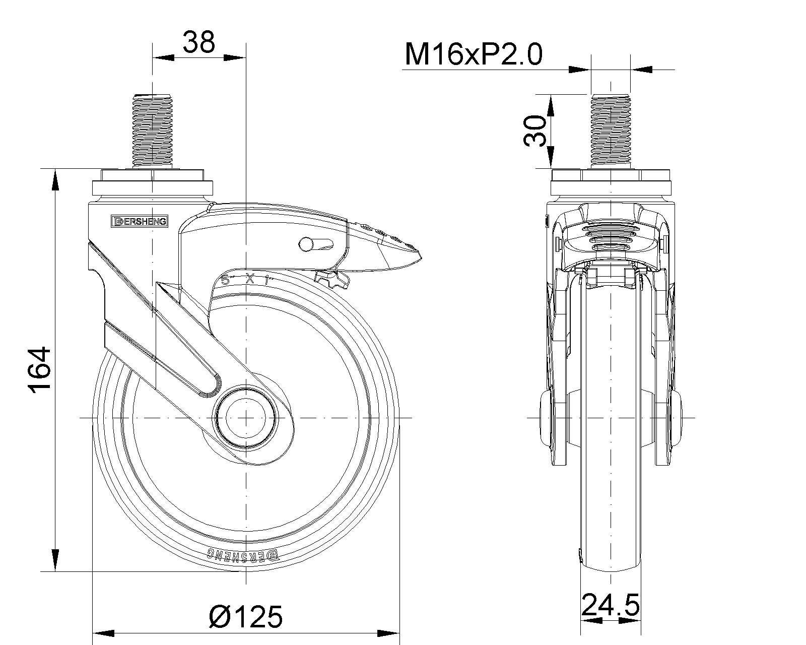 Long double-brake type, With locking system Casters, Threaded Stem M16x30 Blue-gray legs made of polyamide reinforcement, Threaded Stem installation Rust-proof, Corrosion resistant, Attractive appearance, Economical, and Smooth rotation High-Quality Impact-Resistant Polypropylene Wheel Center, High-Quality Reinforced Polypropylene Rubber (TPR) Wheel Tread Dark gray, Plain Bearings |