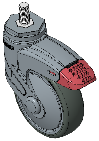 | 配有雙煞式,鎖定係統的腳輪。牙心鎖配藍灰色