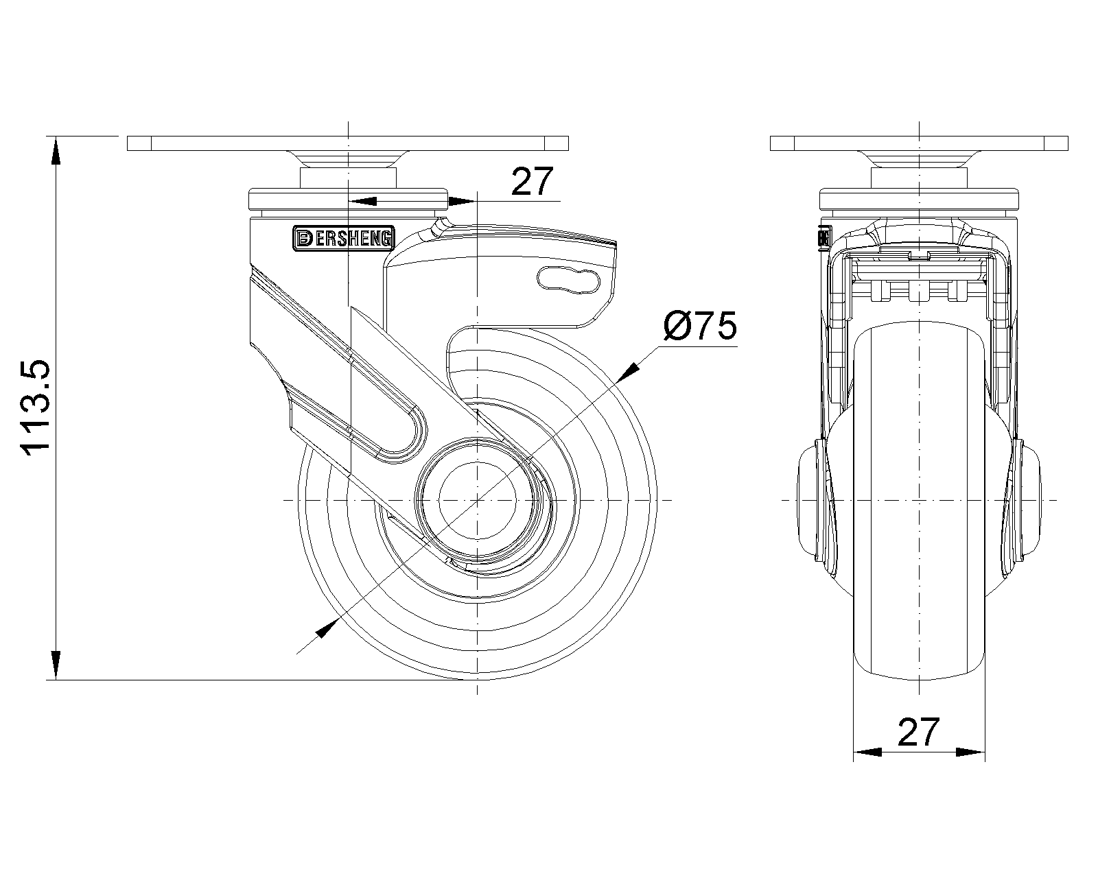 固定式脚轮,75x45高级底板 蓝灰色聚醯胺增强料,底板式安装 防锈,耐腐蚀,转动灵活,适用 于低、中型台车 耐冲击聚丙烯轮芯,热塑性弹性體(TPR)轮面 深灰色,轮子轴承—精密滚珠 |