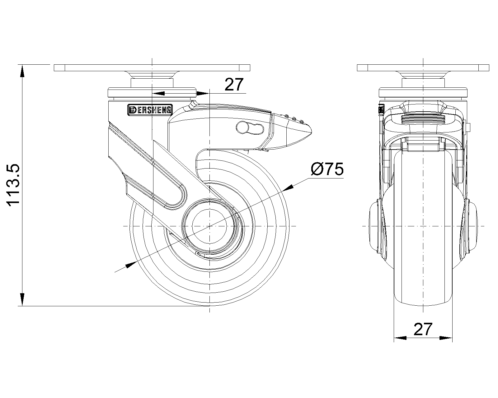 短双煞式锁定系统的脚轮,75x45高级底板 蓝灰脚架采用聚醯胺增强料,底板式安装 防銹,耐腐蚀,美观,经济,转动灵活 耐冲击聚丙烯轮芯,热塑性弹性體(TPR)轮面 深灰色,轮子轴承—精密滚珠 |