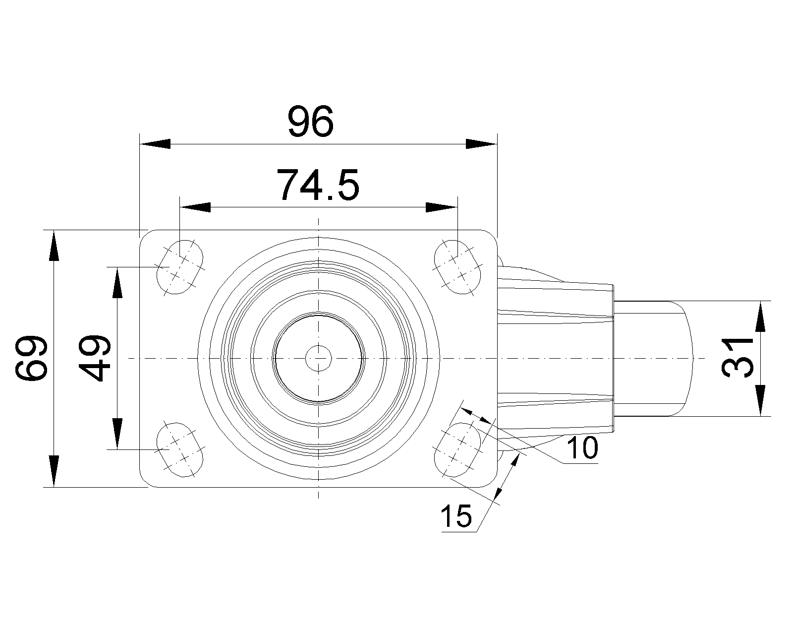 固定式脚轮,高级底板—74.5x49斜孔底板 蓝灰脚架采用聚醯胺增强料,底板式安装 防銹,耐腐蚀,美观,经济,转动灵活 耐冲击聚丙烯轮芯,热塑性弹性體(TPR)轮面 深灰色,轮子轴承—精密滚珠 |