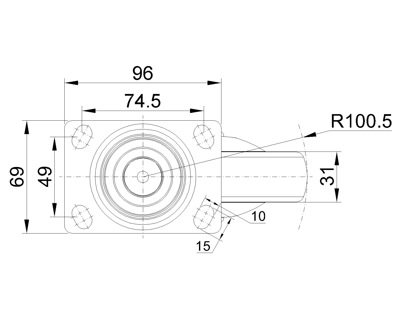 活动式锁定系统的脚轮,74.5x49斜孔底板 蓝灰脚架采用聚醯胺增强料,底板式安装 防銹,耐腐蚀,美观,经济,转动灵活 耐冲击聚丙烯轮芯,热塑性弹性體(TPR)轮面 深灰色,轮子轴承—精密滚珠 |