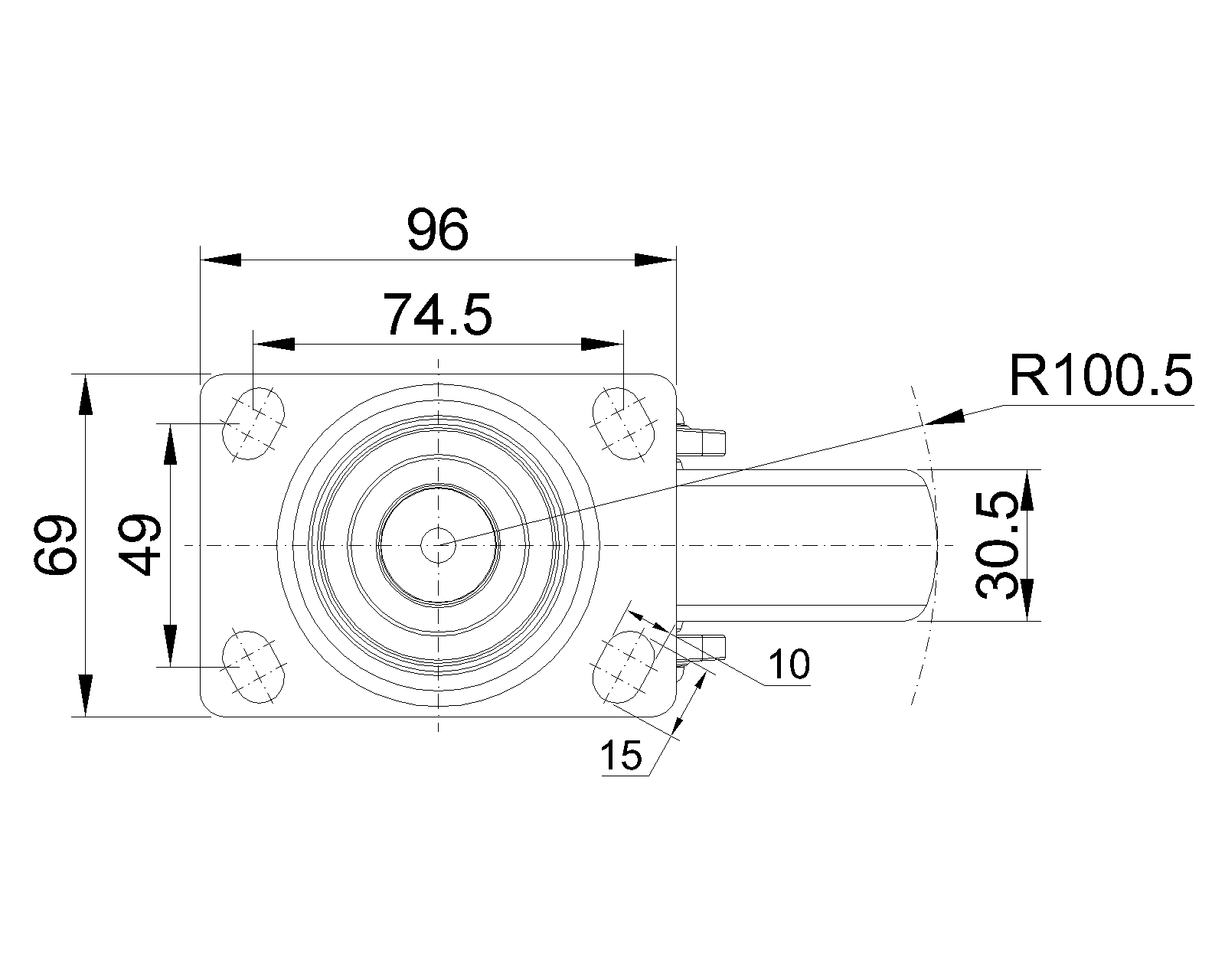 活动式脚轮,高级底板—74.5x49斜孔底板 蓝灰脚架采用聚醯胺增强料,底板式安装 防銹,耐腐蚀,美观,经济,转动灵活 耐冲击聚丙烯轮芯,热塑性弹性體(TPR)轮面 深灰色,轮子—中管式 |