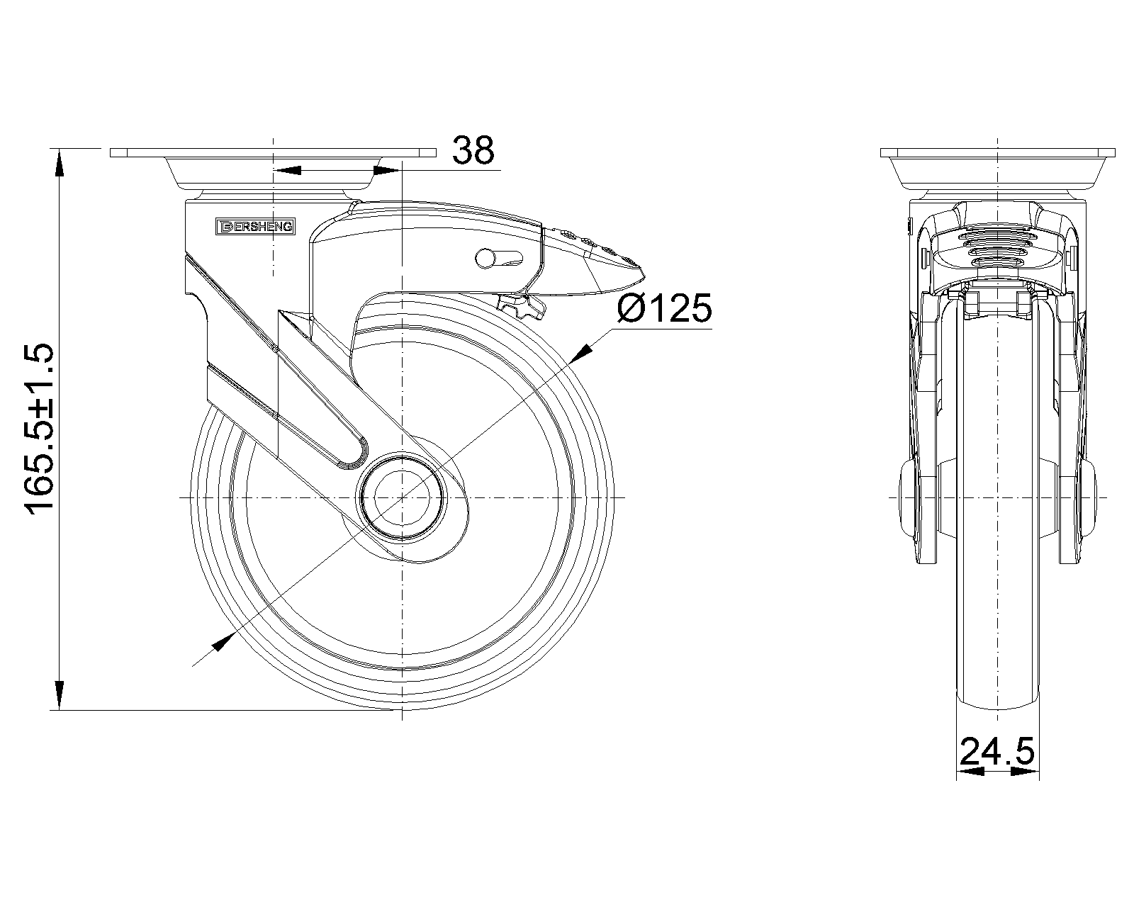 | 經典 PPR 輪(中管藍灰深灰) 輪徑 × 輪寬 125×24.5mm |