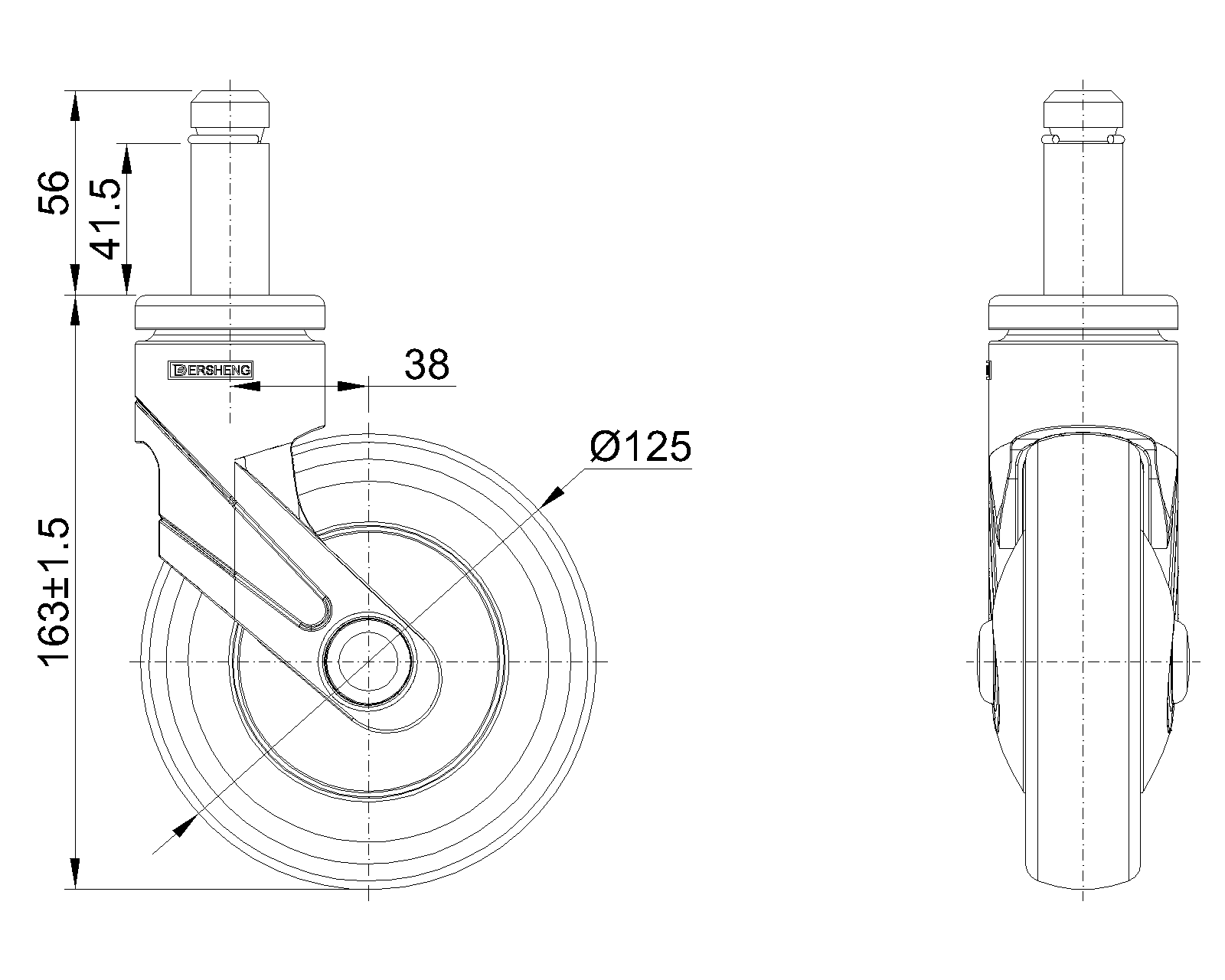 活动式脚轮,插心铆钉—Ø21.6x56L 蓝灰脚架采用聚醯胺增强料,插杆式安装 防銹,耐腐蚀,美观,经济,转动灵活 耐冲击聚丙烯轮芯,热塑性弹性體(TPR)轮面 深灰色,轮子—中管式 |