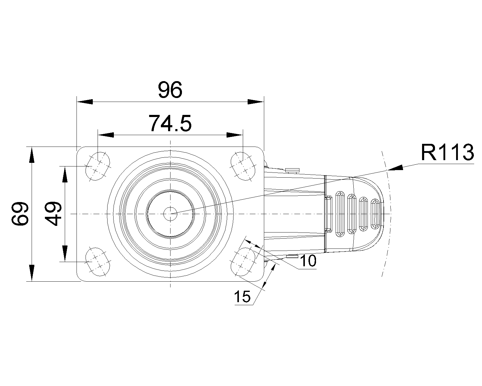 长双煞式锁定系统的脚轮,74.5x49斜孔底板 珠光脚架采用聚醯胺增强料,底板式安装 防銹,耐腐蚀,美观,经济,转动灵活 耐冲击聚丙烯轮芯,热塑性弹性體(TPR)轮面 深灰色,轮子—中管式 |