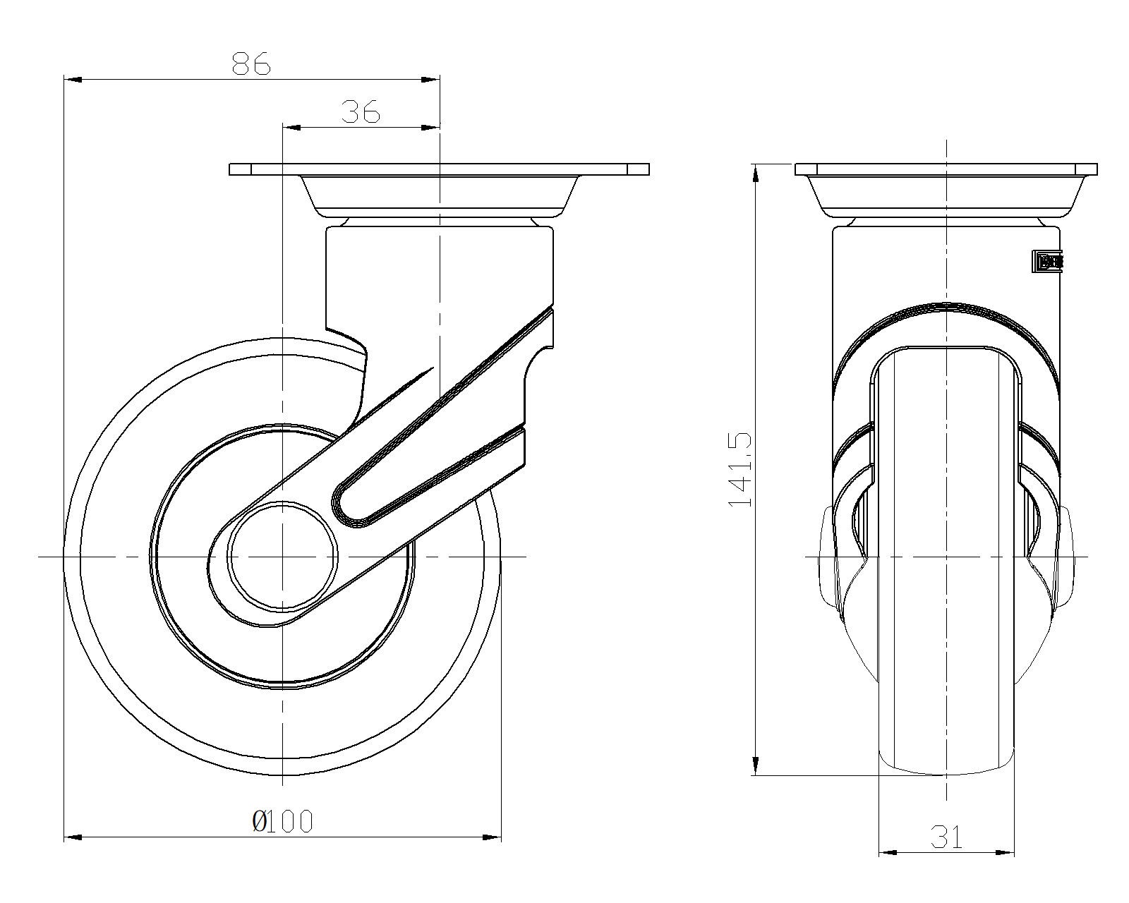 | (màu xanh xám)Đường kính bánh xe đầy đủ × chiều rộng bánh xe 100 x 31mm |