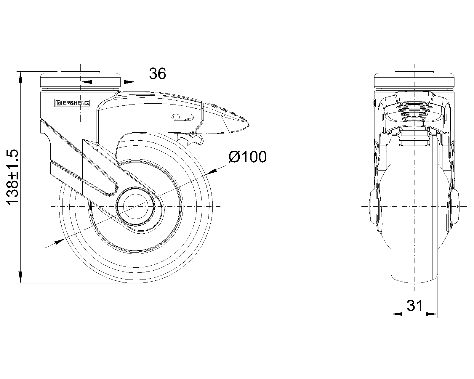 | (màu xanh xám)Đường kính bánh xe đầy đủ × chiều rộng bánh xe 100 x 31mm |