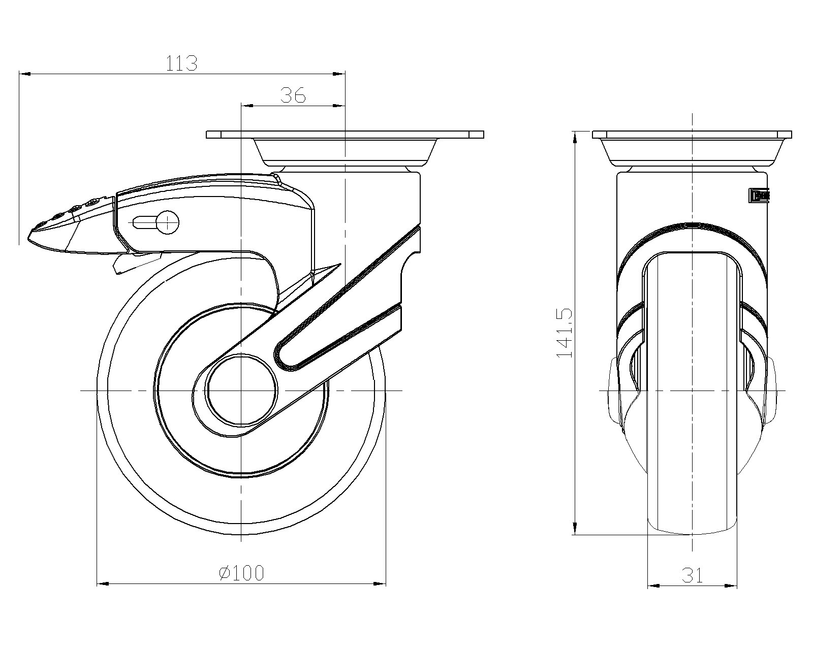 | (màu xanh xám)Đường kính bánh xe đầy đủ × chiều rộng bánh xe 100 x 31mm |