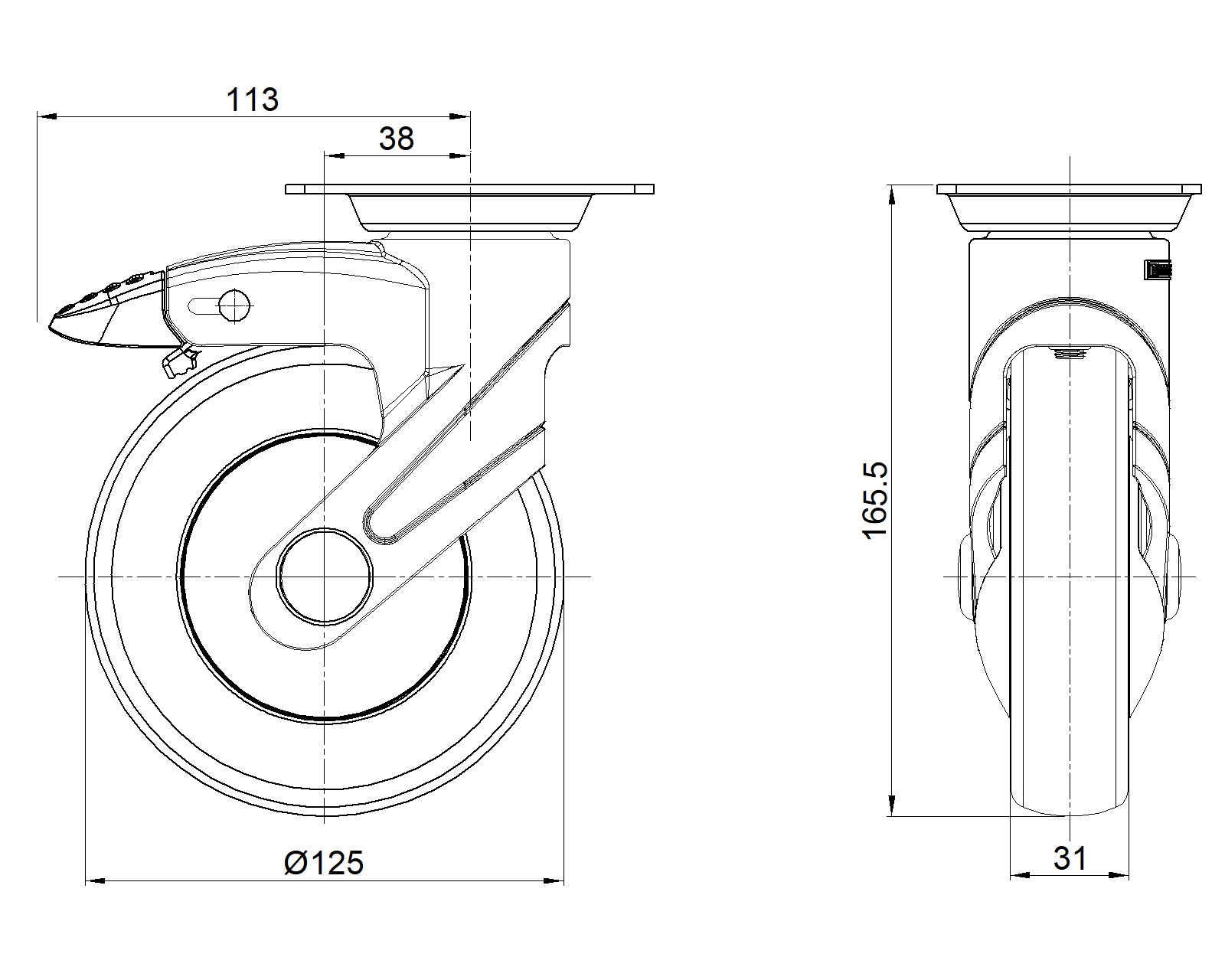 | (màu xanh xám)Đường kính bánh xe đầy đủ × chiều rộng bánh xe 125 x 31mm |
