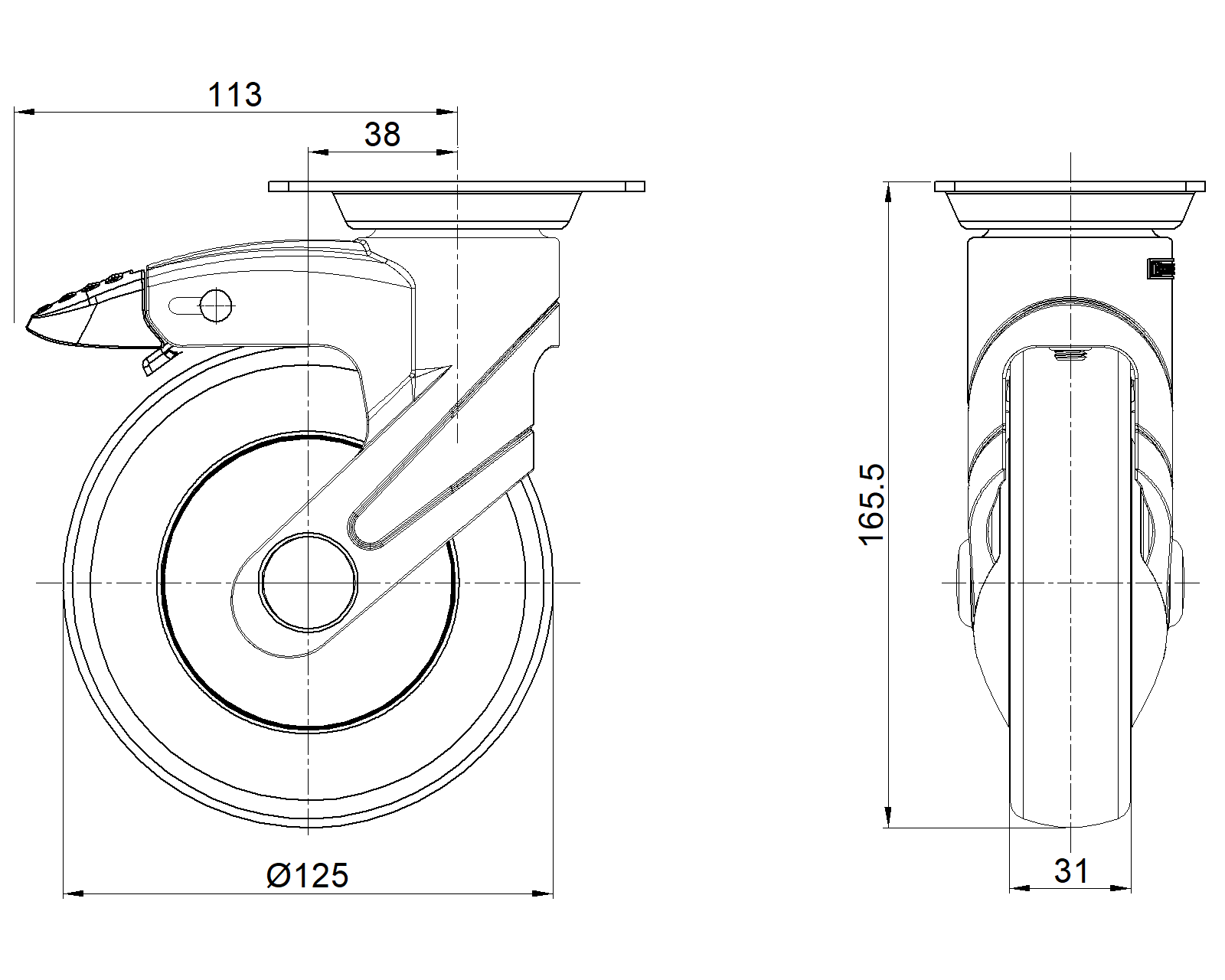 | (màu xanh xám)Đường kính bánh xe đầy đủ × chiều rộng bánh xe 125 x 31mm |