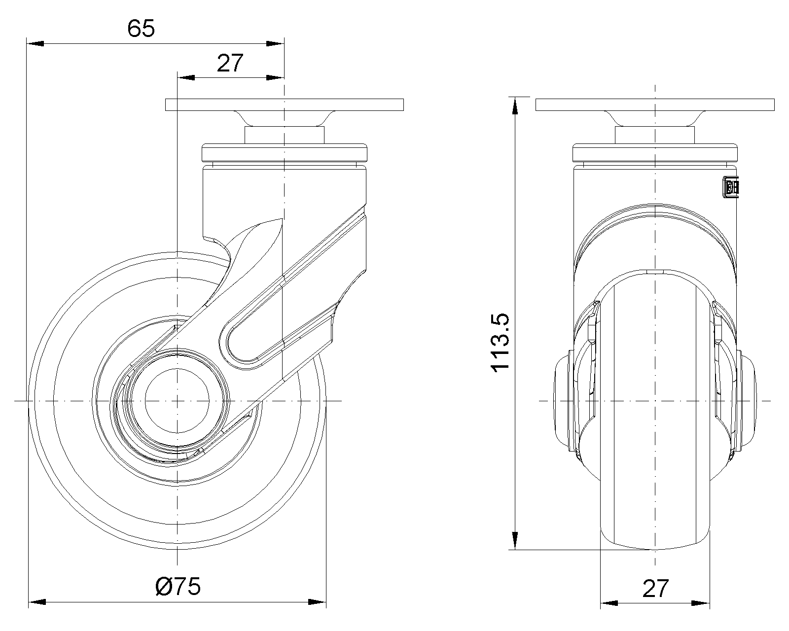 | Bánh xe hiệu ứng đầy đủ (màu xanh xám) Đường kính bánh xe × Chiều rộng bánh xe 75 x 27mm |