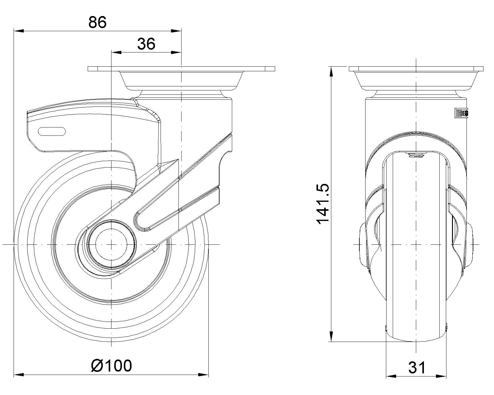 | (màu xanh xám)Đường kính bánh xe đầy đủ × chiều rộng bánh xe 100 x 31mm |