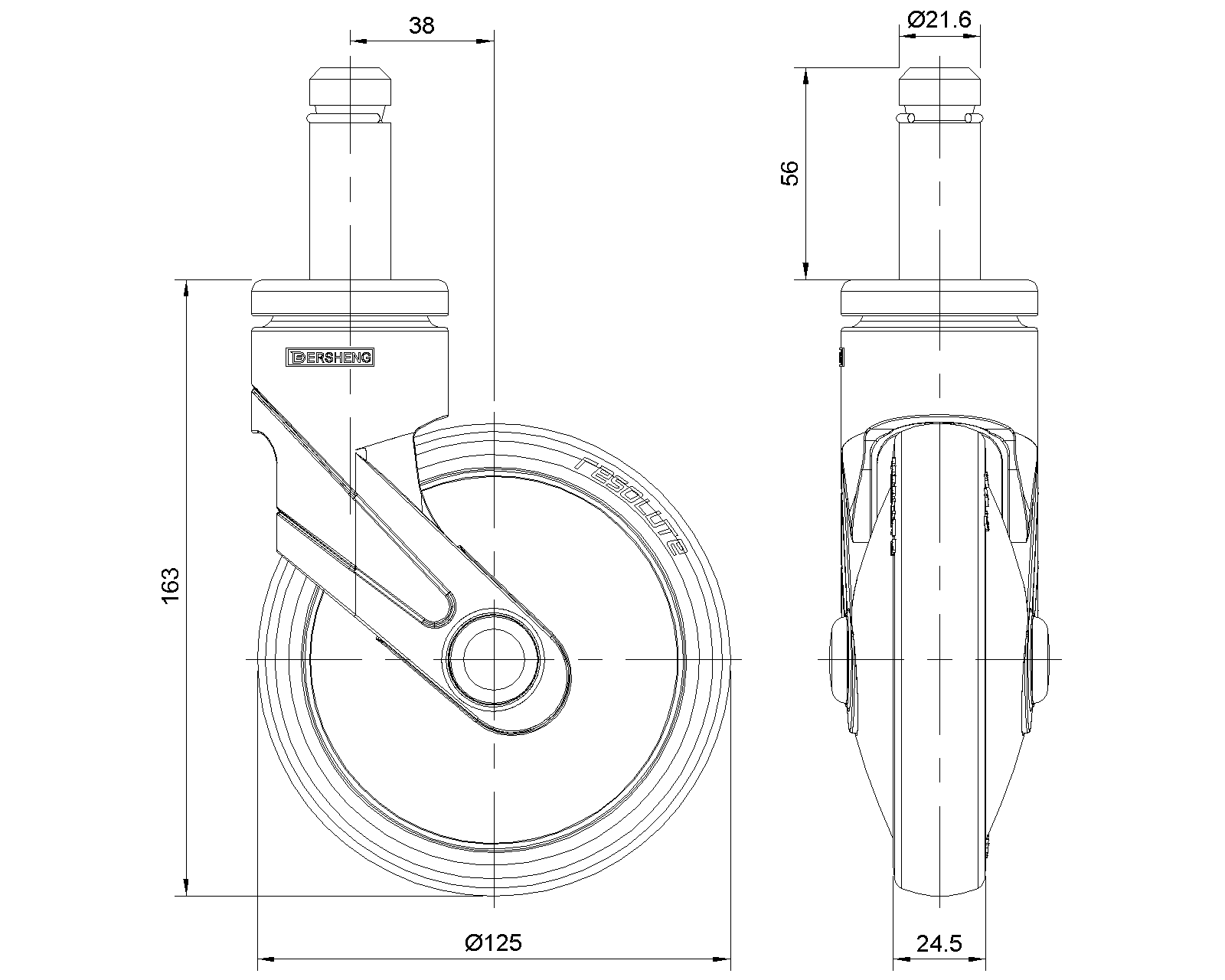 Bánh xe di động, đinh tán chốt—Ø21,6x56L, có vòng chữ C Chân màu xanh xám làm bằng vật liệu polyamide gia cố, lắp đặt bằng chốt Chống gỉ, chống ăn mòn, thẩm mỹ, tiết kiệm và xoay trơn tru Lõi bánh xe bằng polypropylen chống va đập, bề mặt bánh xe bằng nhựa nhiệt dẻo đàn hồi (TPR) Vòng bi bánh xe màu xám đậm—vòng bi chính xác |
