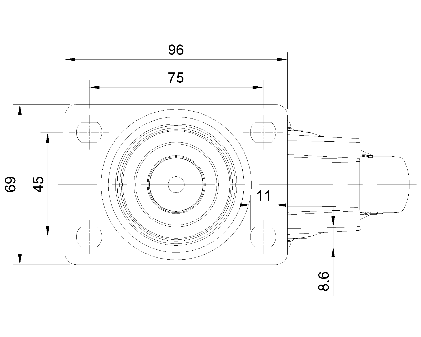 | Bánh xe cố định, đế cao cấp—75x45, đế lỗ góc Chân màu xanh xám làm bằng vật liệu polyamide gia cố, lắp đế Chống gỉ, chống ăn mòn, thẩm mỹ, tiết kiệm và xoay linh hoạt Lõi bánh xe bằng polypropylene chống va đập, bề mặt bánh xe bằng nhựa nhiệt dẻo đàn hồi (TPR) Vòng bi bánh xe màu xám đậm—vòng bi chính xác |