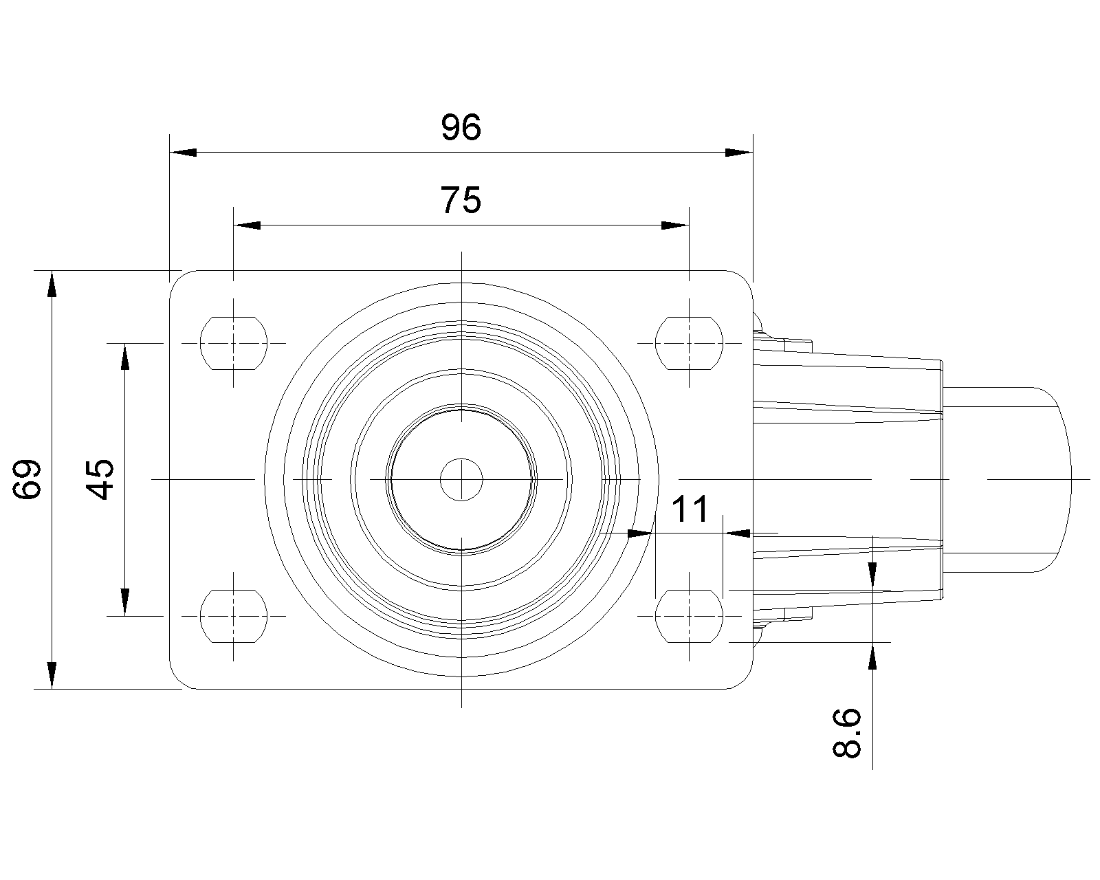 | Bánh xe cố định, đế cao cấp—đế lỗ góc 75x45 Chân màu xanh xám làm bằng polyamide gia cố, lắp đế Chống gỉ, chống ăn mòn, thẩm mỹ, tiết kiệm và xoay linh hoạt Lõi bánh xe bằng polypropylene chống va đập, bề mặt bánh xe bằng nhựa nhiệt dẻo đàn hồi (TPR) Bánh xe màu xám đậm—loại ống giữa |