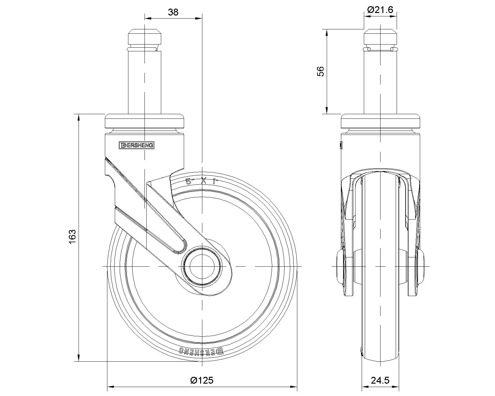 Bánh xe di động, đinh tán chốt—Ø21,6x56L, có vòng chữ C Chân màu xanh xám làm bằng polyamide gia cố, lắp đặt bằng chốt Chống gỉ, chống ăn mòn, thẩm mỹ, tiết kiệm và xoay trơn tru Lõi bánh xe bằng polypropylen chống va đập, bề mặt bánh xe bằng nhựa nhiệt dẻo đàn hồi (TPR) Bánh xe màu xám đậm—loại ống trung tâm |
