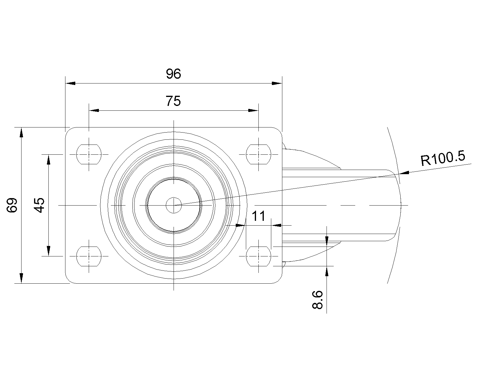 Bánh xe thật, đế cao cấp—đế lỗ góc 75x45 Chân màu xanh xám làm bằng polyamide gia cố, lắp đế Chống gỉ, chống ăn mòn, thẩm mỹ, tiết kiệm và xoay linh hoạt Lõi bánh xe bằng polypropylene chống va đập, bề mặt bánh xe bằng nhựa nhiệt dẻo đàn hồi (TPR) Bánh xe màu xám đậm—loại ống giữa |