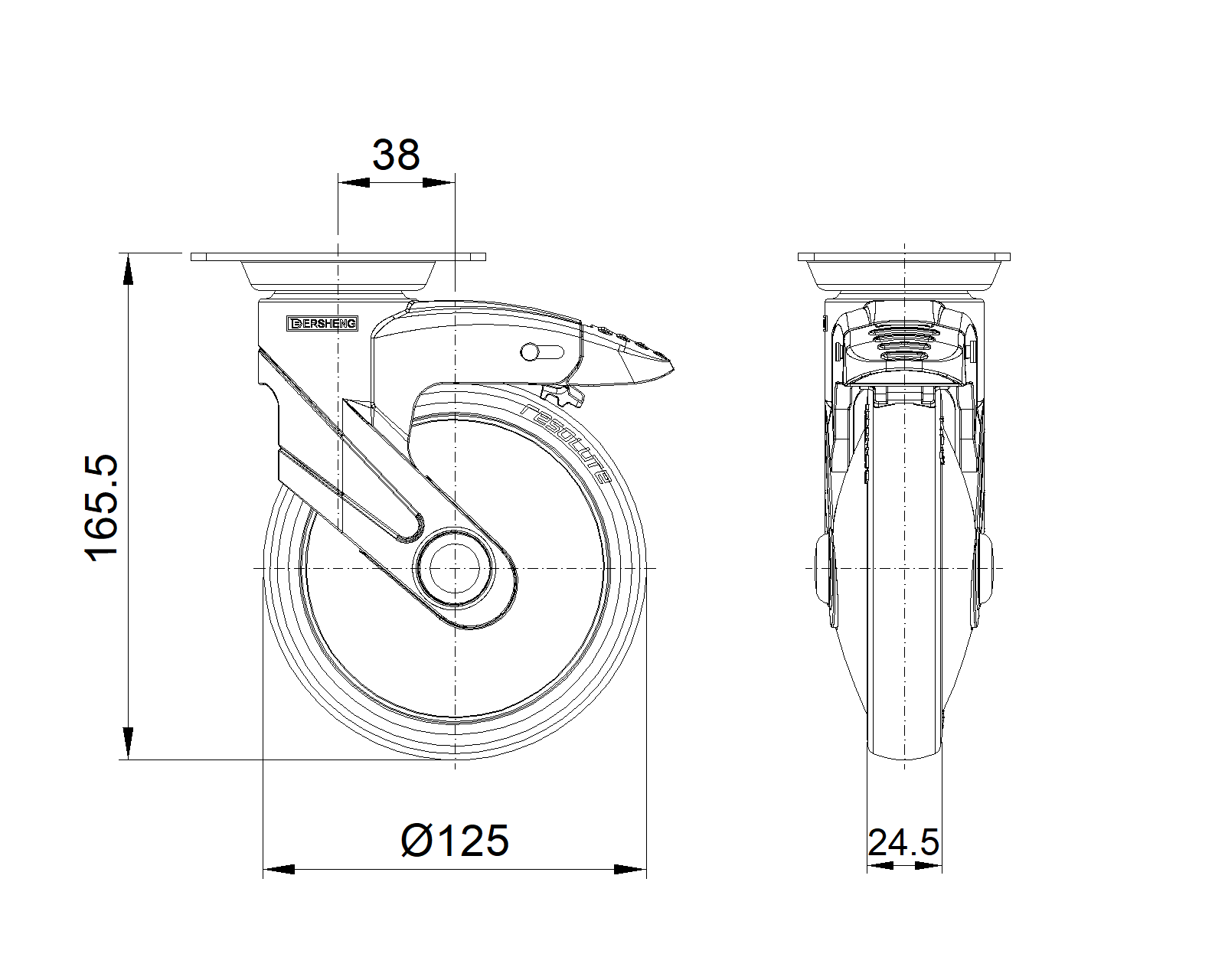 | Bánh xe được trang bị hệ thống khóa phanh kép dài, đế cao cấp—đế lỗ góc 75x45