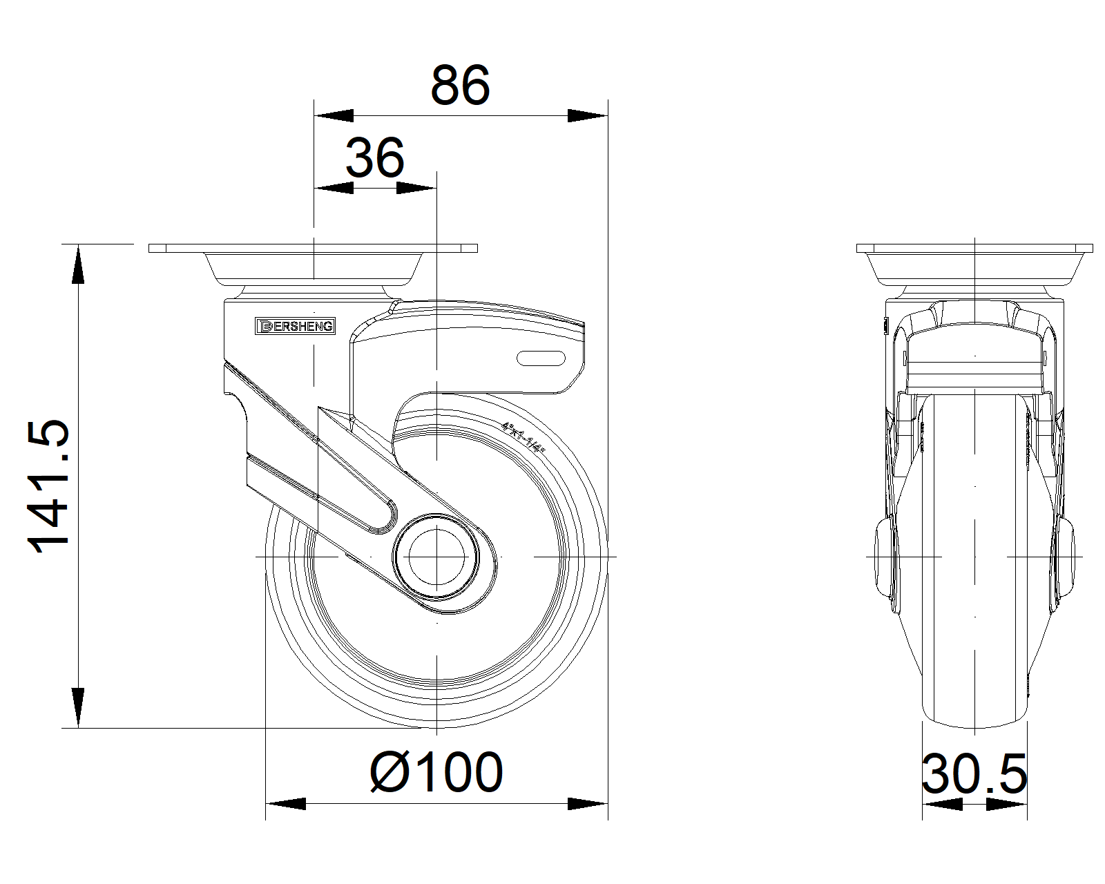 | (màu xanh xám)Đường kính bánh xe đầy đủ × chiều rộng bánh xe 100 x 31mm |