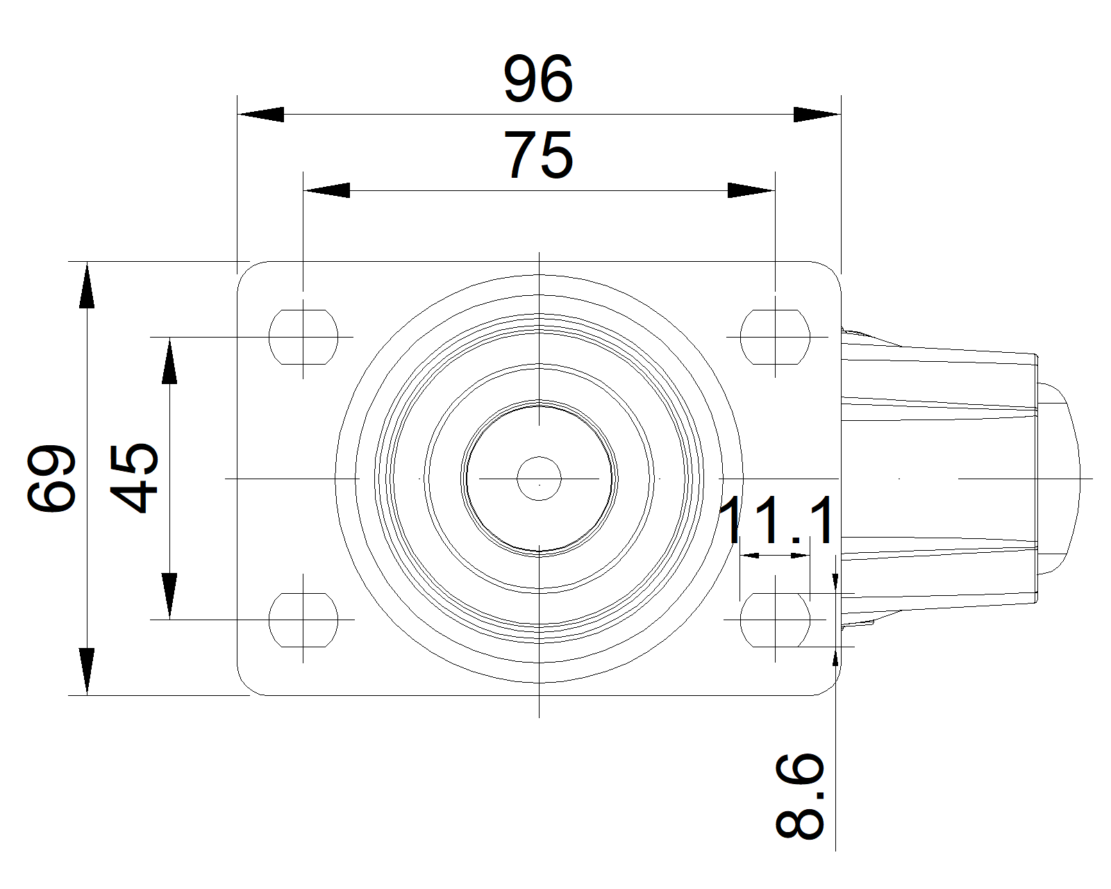 | Bánh xe cố định, đế cao cấp—75x45, đế lỗ góc Chân màu xanh xám làm bằng vật liệu polyamide gia cố, lắp đế Chống gỉ, chống ăn mòn, thẩm mỹ, tiết kiệm và cho phép xoay linh hoạt Lõi bánh xe bằng polypropylene chống va đập, bề mặt bánh xe bằng nhựa nhiệt dẻo đàn hồi (TPR) Vòng bi bánh xe màu xám đậm—vòng bi chính xác |