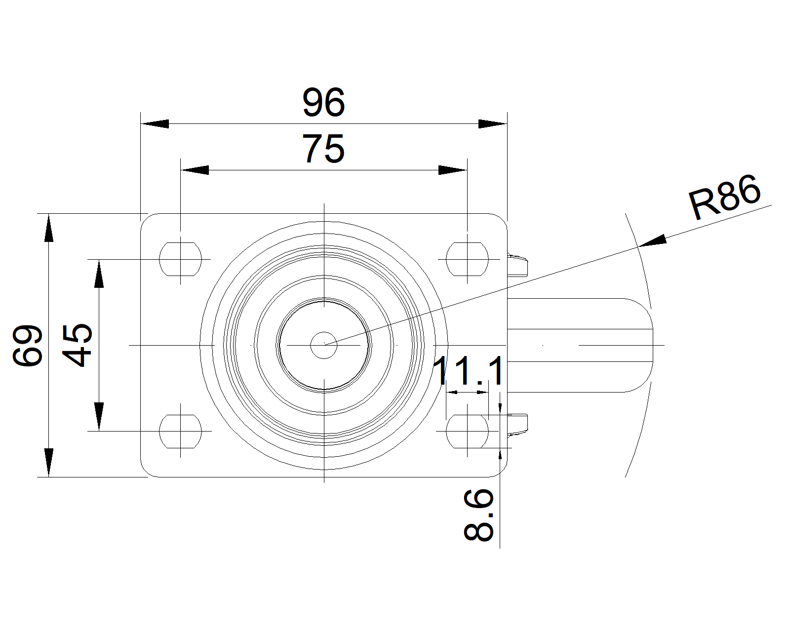 Bánh xe thật, đế cao cấp—75x45, đế góc đục lỗ Chân màu xanh xám làm bằng polyamide gia cố, lắp đế Chống gỉ, chống ăn mòn, thẩm mỹ, tiết kiệm và xoay êm ái Lõi bánh xe bằng polypropylene chống va đập, bề mặt bánh xe bằng nhựa nhiệt dẻo đàn hồi (TPR) Bánh xe màu xám đậm—loại ống giữa |