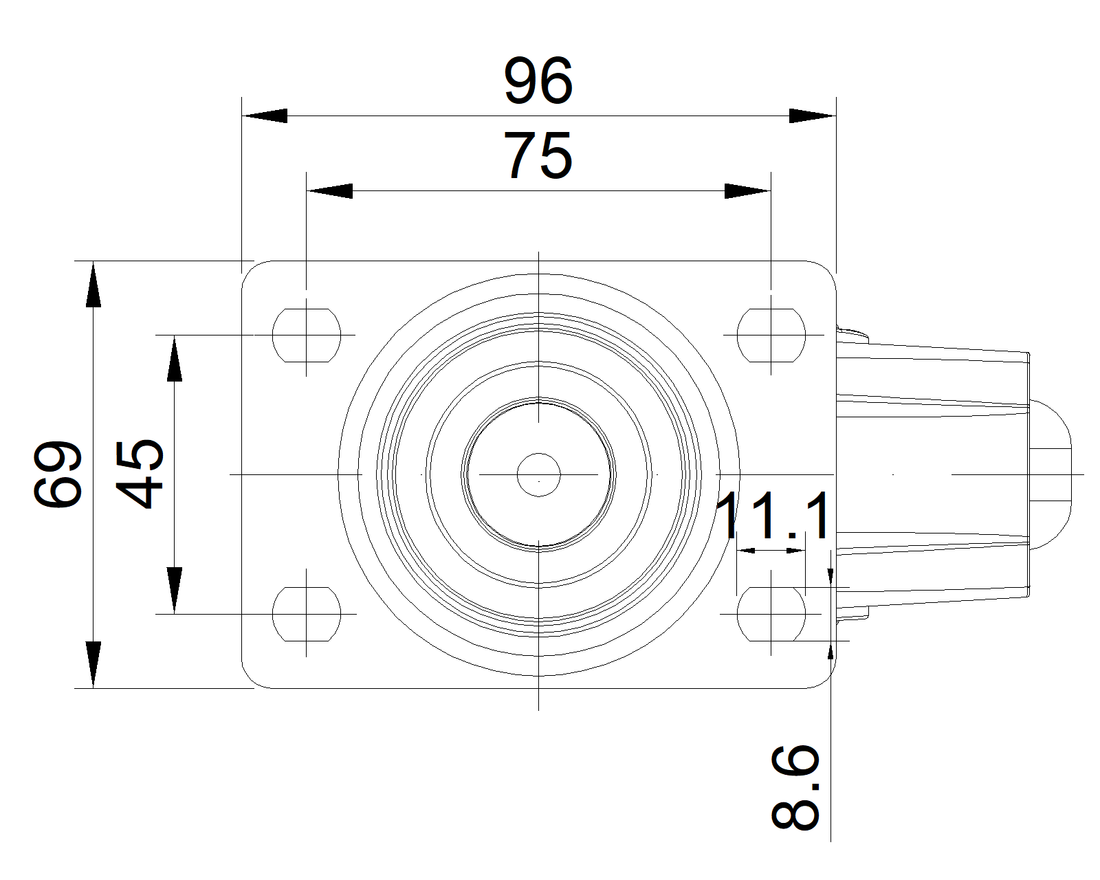 | Bánh xe cố định, đế cao cấp—75x45, đế góc đục lỗ Bánh xe màu ngọc trai gia cố bằng polyamide, lắp đế Chống gỉ sét, chống ăn mòn, thẩm mỹ, tiết kiệm và cho phép xoay linh hoạt Lõi bánh xe bằng polypropylene chống va đập, bề mặt bánh xe bằng nhựa nhiệt dẻo đàn hồi (TPR) Bánh xe ống trung tâm màu xám đậm |