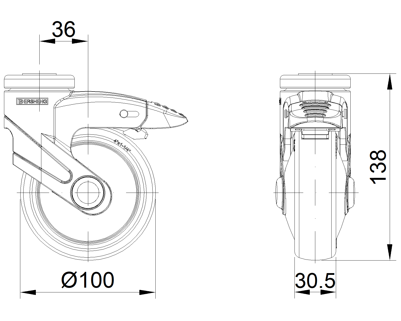 | Bánh xe PPR cổ điển với hệ thống phanh kép và khóa.