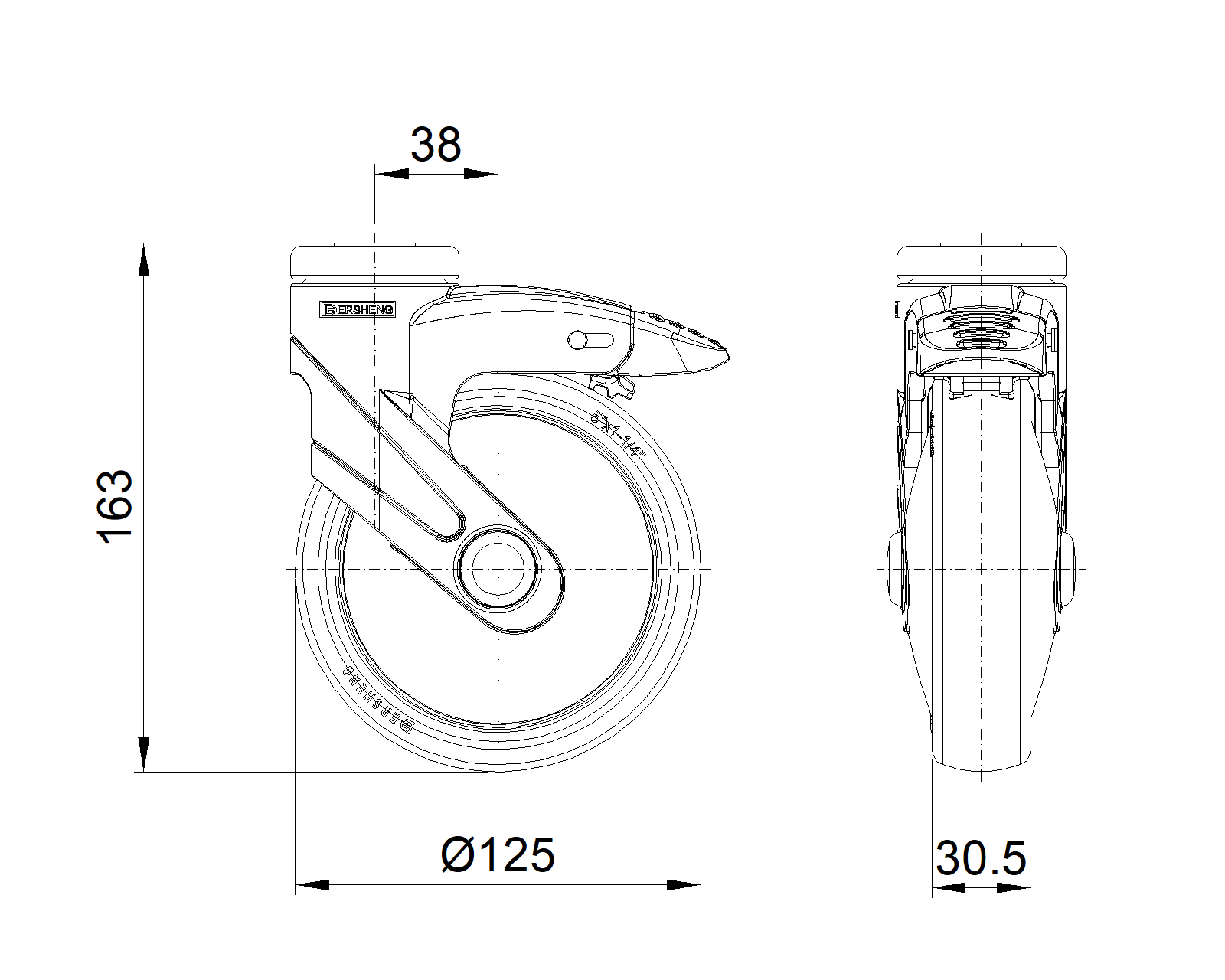 Bánh xe với hệ thống khóa kép dài, đinh tán rỗng—12 lỗ rỗng Chân bánh xe được hoàn thiện bằng lớp gia cố polyamide, lắp đặt khóa Chống gỉ, chống ăn mòn, thẩm mỹ, tiết kiệm và xoay linh hoạt Lõi bánh xe bằng polypropylen chống va đập, bề mặt bánh xe bằng nhựa nhiệt dẻo đàn hồi (TPR) Bánh xe màu xám đậm—loại ống trung tâm |