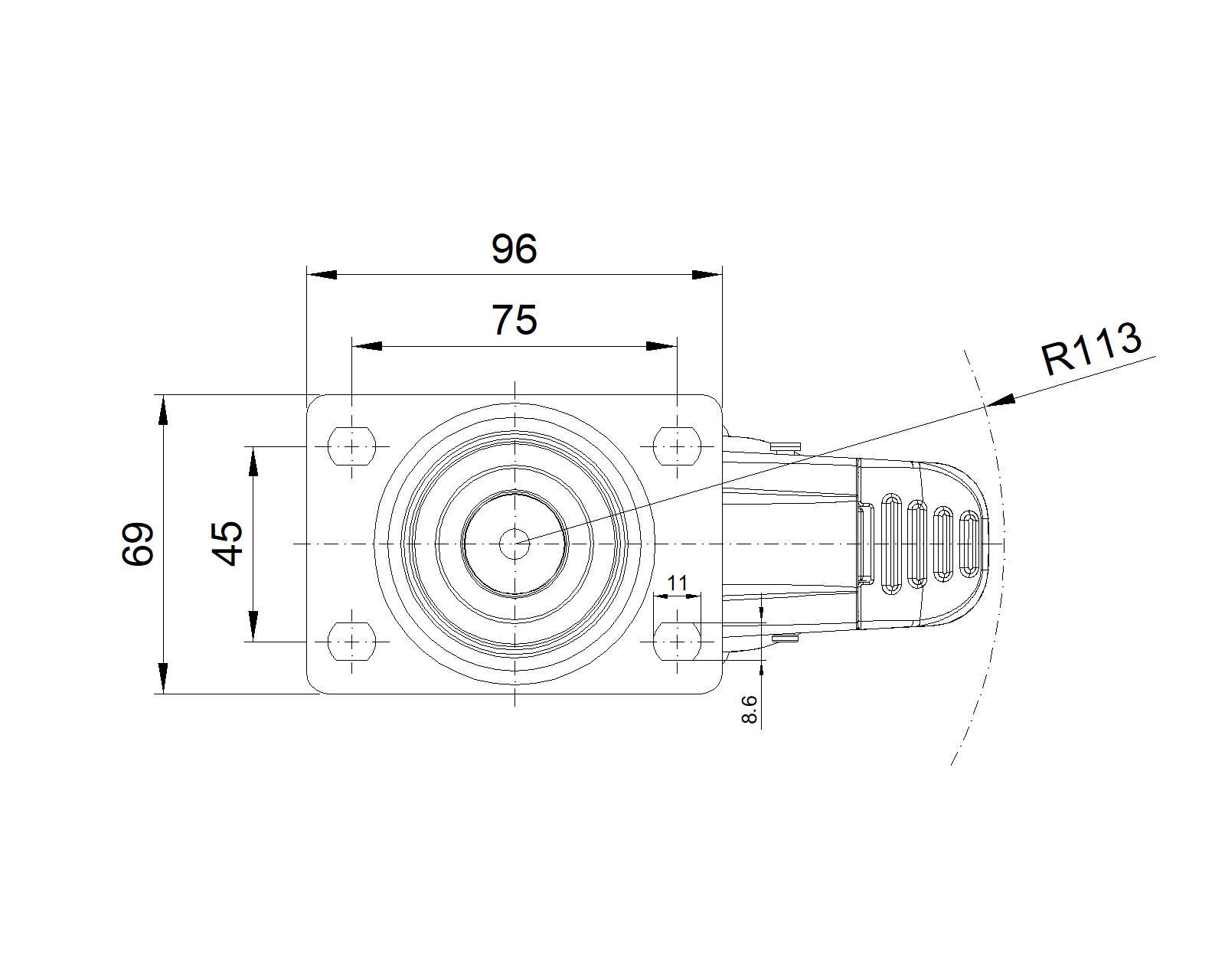 Bánh xe với hệ thống khóa kép dài, đế cao cấp—đế lỗ góc 75x45 Chân màu xanh xám làm bằng polyamide gia cố, lắp đế Chống gỉ, chống ăn mòn, thẩm mỹ, tiết kiệm và xoay linh hoạt Lõi bánh xe bằng polypropylene chống va đập, bề mặt bánh xe bằng nhựa nhiệt dẻo đàn hồi (TPR) Bánh xe màu xám đậm—loại ống giữa |