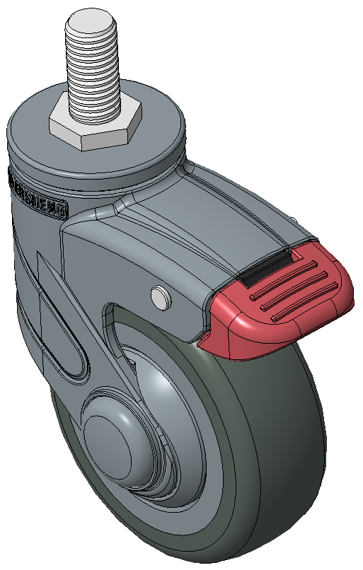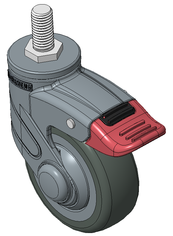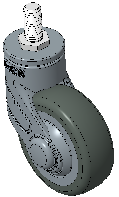 Bánh xe với hệ thống khóa kép dài, ren M12x25 Chân màu xanh xám làm bằng polyamide gia cường, lắp ren Chống gỉ, chống ăn mòn, thẩm mỹ, tiết kiệm và xoay linh hoạt Lõi bánh xe bằng polypropylene chống va đập, bề mặt bánh xe bằng nhựa nhiệt dẻo đàn hồi (TPR) Vòng bi bánh xe màu xám đậm—vòng bi chính xác |