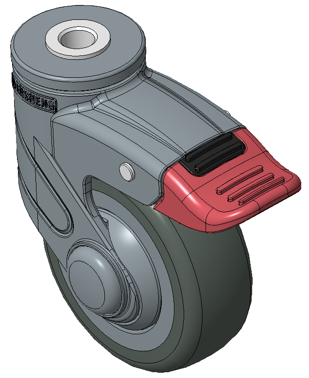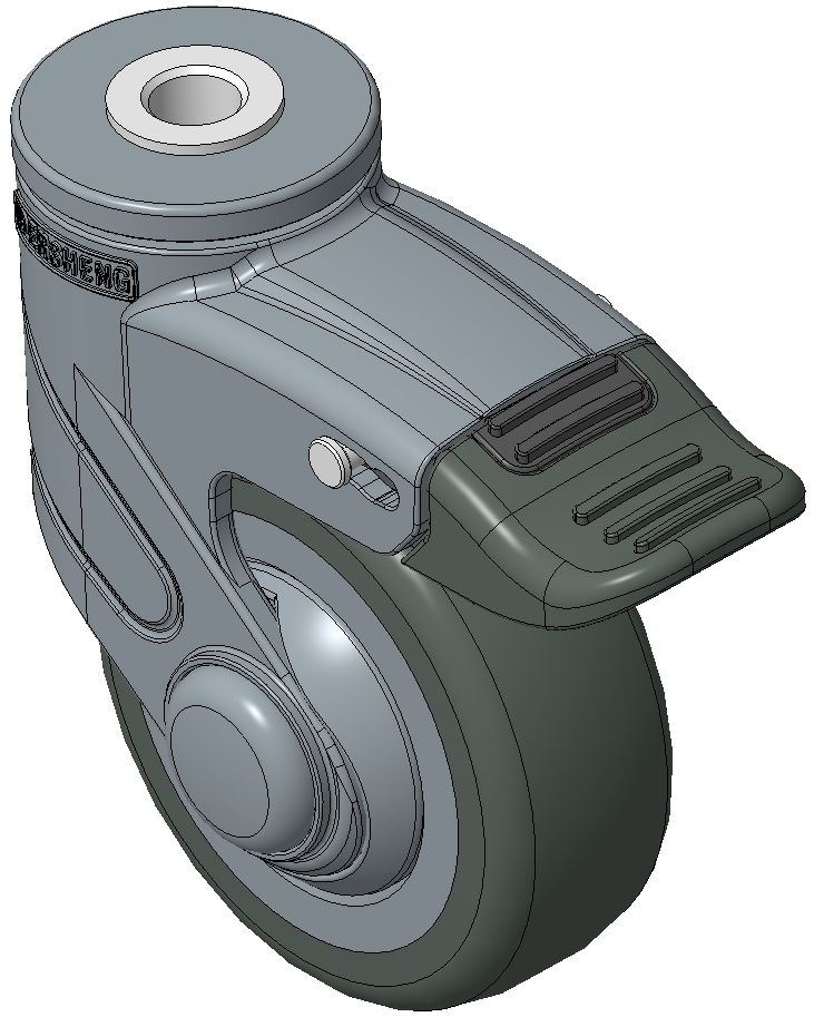 Bánh xe với hệ thống khóa phanh kép dài, đinh tán rỗng—lỗ Ø10,2 Chân màu xanh xám làm bằng polyamide gia cố, lắp đặt khóa Chống gỉ, chống ăn mòn, thẩm mỹ, tiết kiệm và xoay linh hoạt Lõi bánh xe bằng polypropylene chống va đập, bề mặt bánh xe bằng nhựa nhiệt dẻo đàn hồi (TPR) Bánh xe màu xám đậm—vòng bi chính xác |
