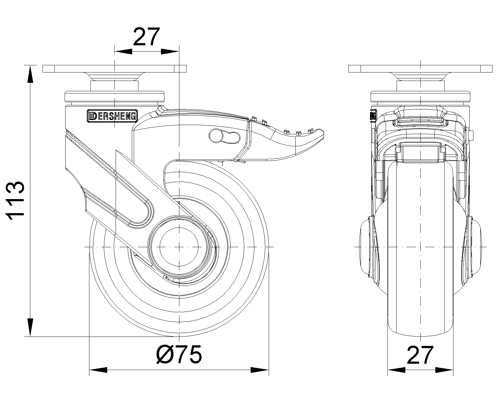 | Bánh xe hiệu ứng đầy đủ (màu xanh xám) Đường kính bánh xe × Chiều rộng bánh xe 75 x 27mm |