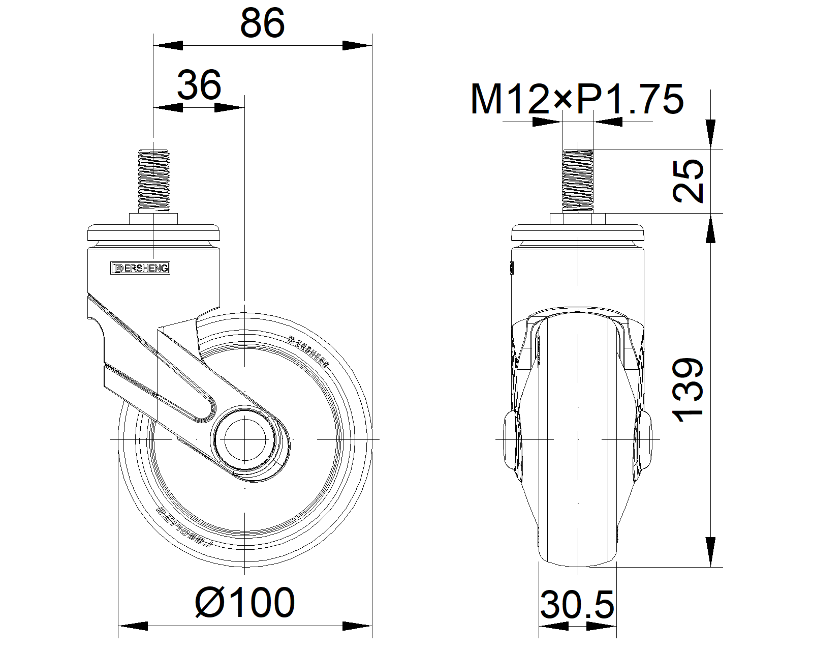 Bánh xe di động, ren M12x25 Bánh xe màu ngọc trai với lớp gia cố polyamide, lắp ren Chống gỉ, chống ăn mòn, thẩm mỹ, tiết kiệm và cho phép xoay trơn tru Lõi bánh xe bằng polypropylene chống va đập, bề mặt bánh xe bằng nhựa nhiệt dẻo đàn hồi (TPR) Vòng bi bánh xe màu xám đậm—vòng bi chính xác |
