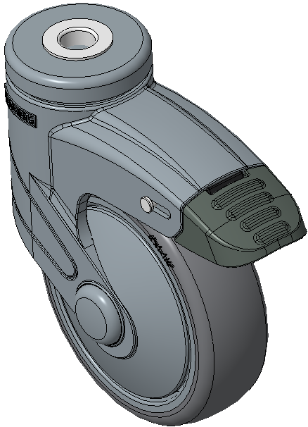 Bánh xe hệ thống khóa phanh kép, đinh tán rỗng—lỗ Ø12,2 Chân màu xanh xám làm bằng polyamide gia cố, lắp đặt khóa Chống gỉ, chống ăn mòn, thẩm mỹ, tiết kiệm và xoay linh hoạt Lõi bánh xe bằng polypropylen chống va đập, bề mặt bánh xe bằng nhựa nhiệt dẻo đàn hồi (TPR) Bánh xe màu xám đậm—loại ống trung tâm |
