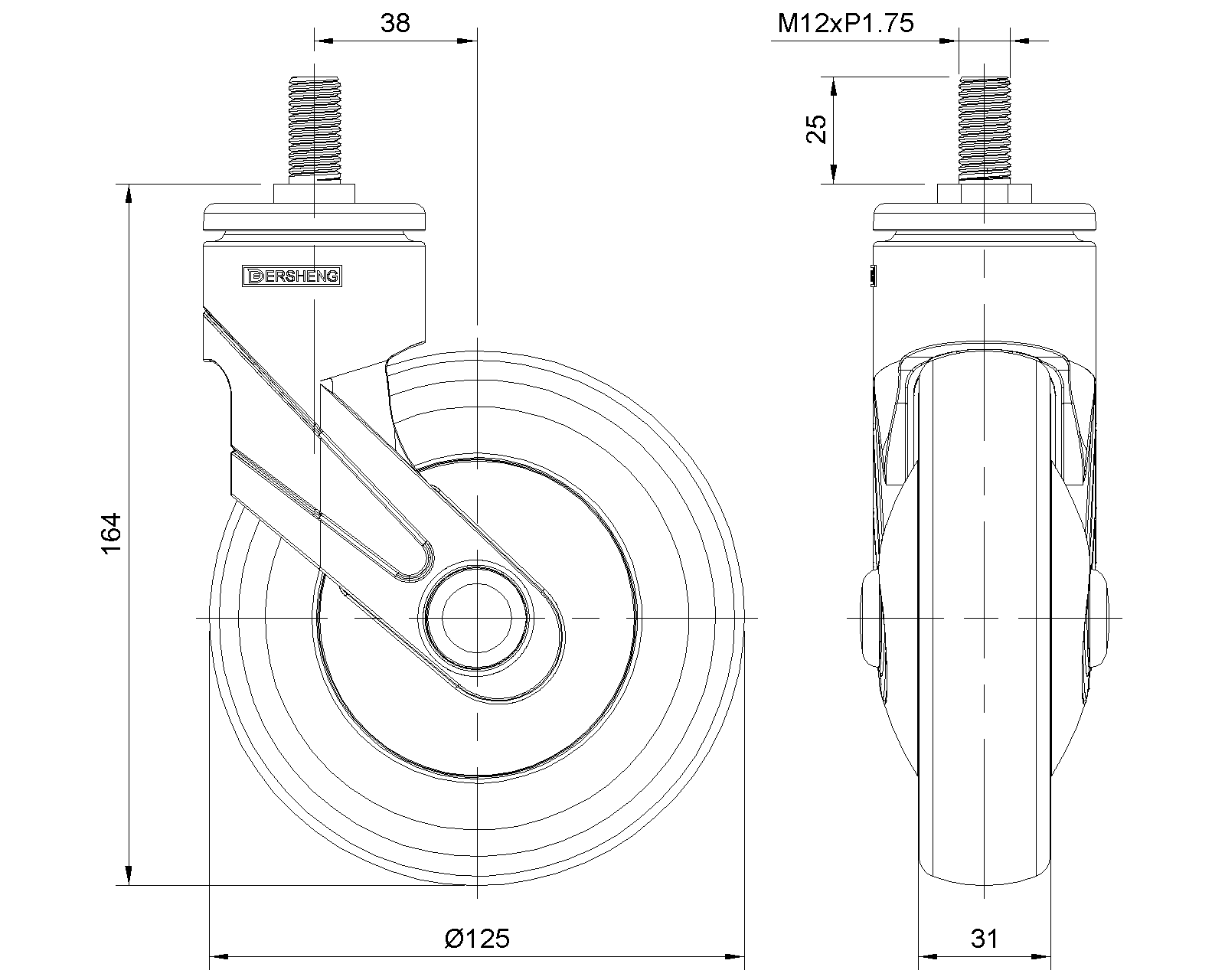 | (màu xanh xám)Đường kính bánh xe đầy đủ × chiều rộng bánh xe 125 x 31mm |