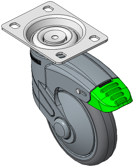 Bánh xe có hệ thống khóa phanh kép, đế cao cấp—75x45, đế lỗ góc Chân màu ngọc trai làm bằng polyamide gia cố, lắp đế Chống gỉ, chống ăn mòn, thẩm mỹ, tiết kiệm và xoay linh hoạt Lõi bánh xe bằng polypropylene chống va đập, bề mặt bánh xe bằng nhựa nhiệt dẻo đàn hồi (TPR) Bánh xe màu xám đậm—loại ống giữa |