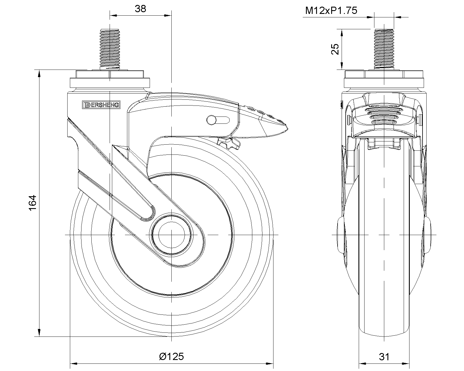 | (màu xanh xám)Đường kính bánh xe đầy đủ × chiều rộng bánh xe 125 x 31mm |