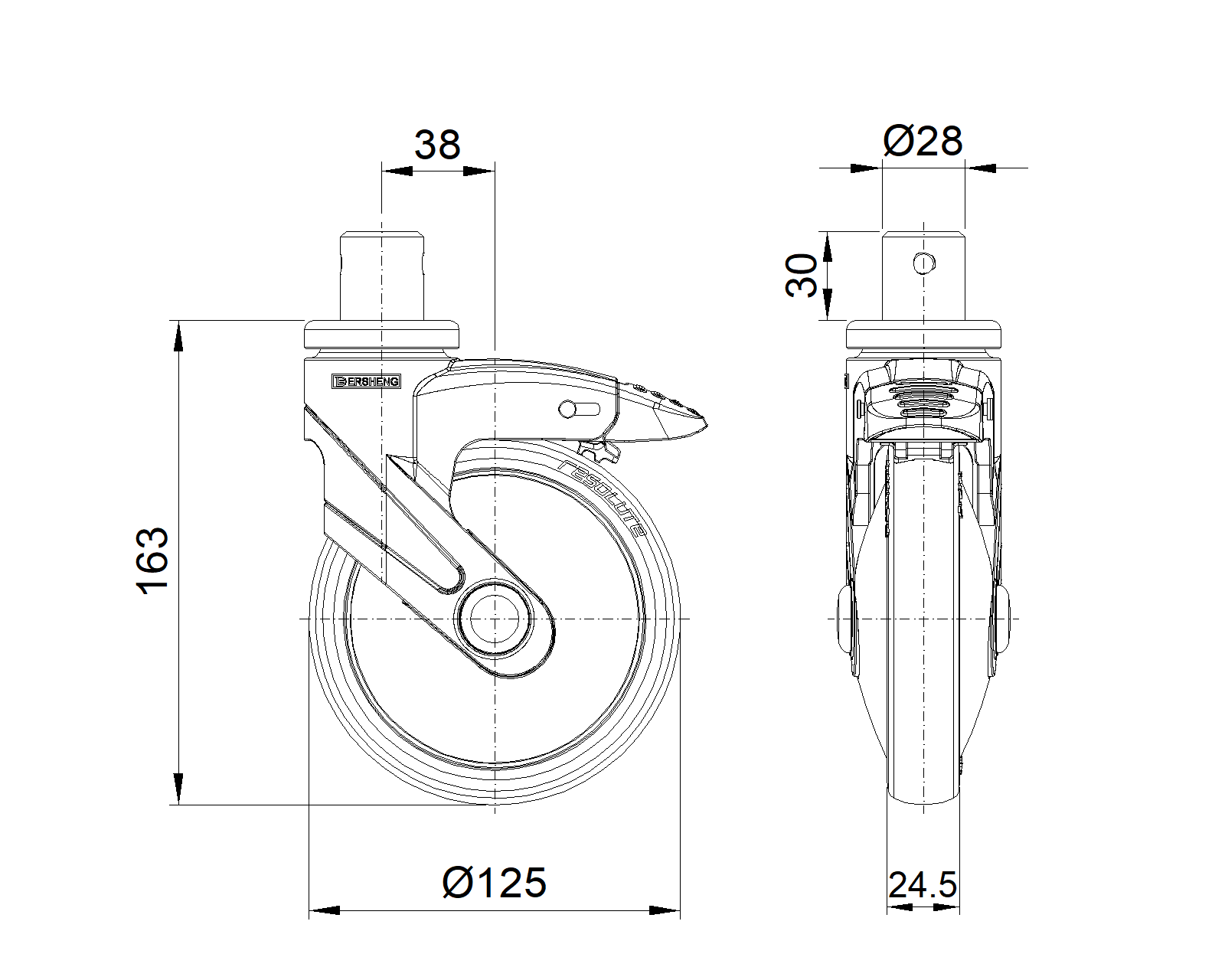 Bánh xe có hệ thống phanh định hướng dài, khóa bánh xe, đinh tán chốt—Ø28x30L Chân màu xám đậm làm bằng polyamide gia cố, lắp đặt bằng chốt Chống gỉ, chống ăn mòn, thẩm mỹ, tiết kiệm và xoay linh hoạt Lõi bánh xe bằng polypropylene chống va đập, bề mặt bánh xe bằng nhựa nhiệt dẻo đàn hồi (TPR) Vòng bi bánh xe màu xám đậm—vòng bi chính xác |