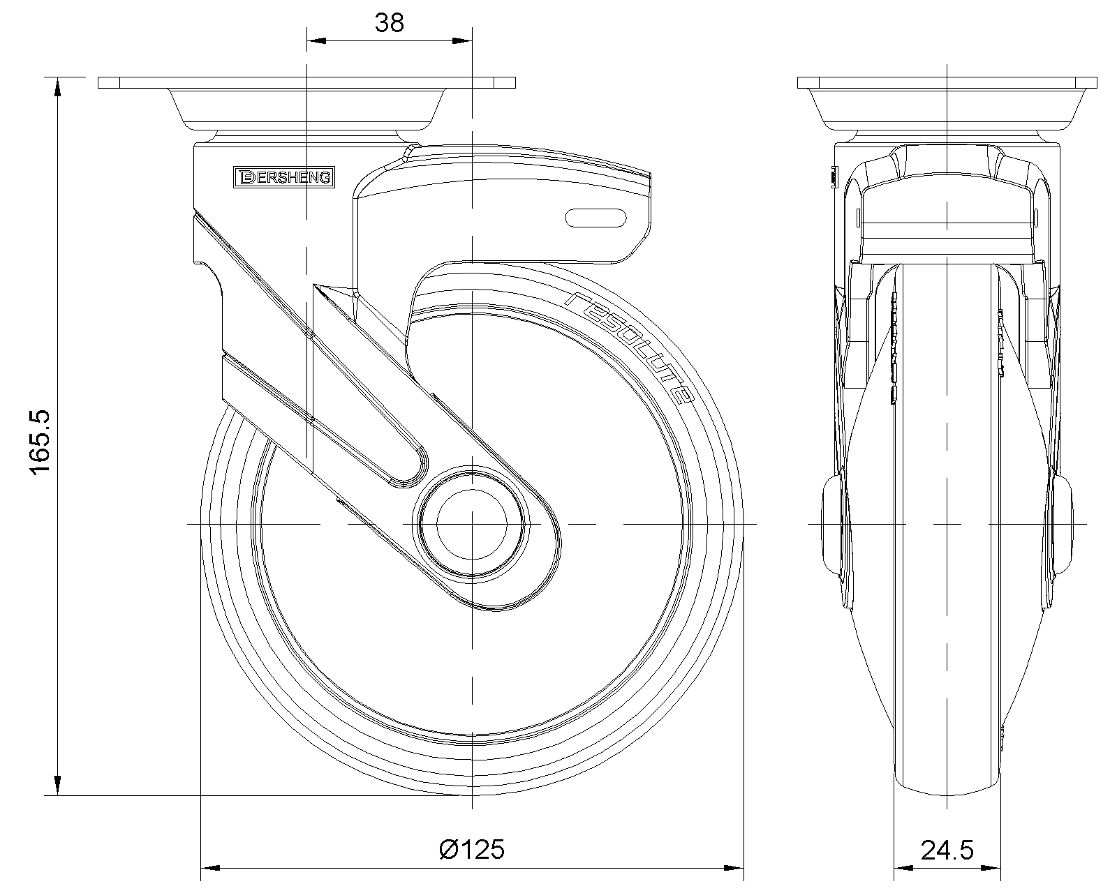 | PPR Bánh xe (loại ống trung bình) (đen đen) Đường kính bánh xe × Chiều rộng bánh xe 125 x 31mm |