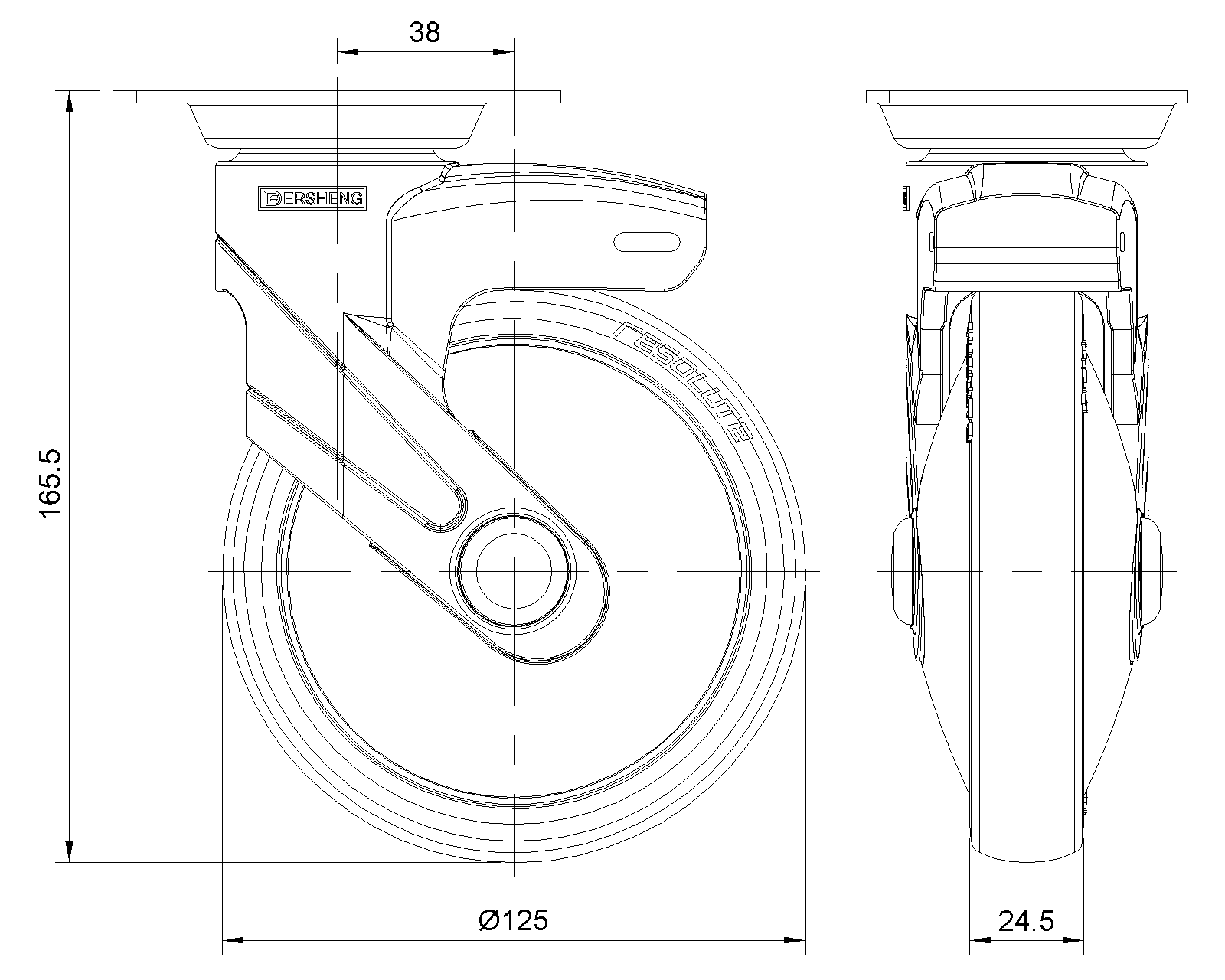 | Cổ điển PPR Bánh xe (đen đen - ống trung bình rộng 37) Đường kính bánh xe × chiều rộng bánh xe 125 x |