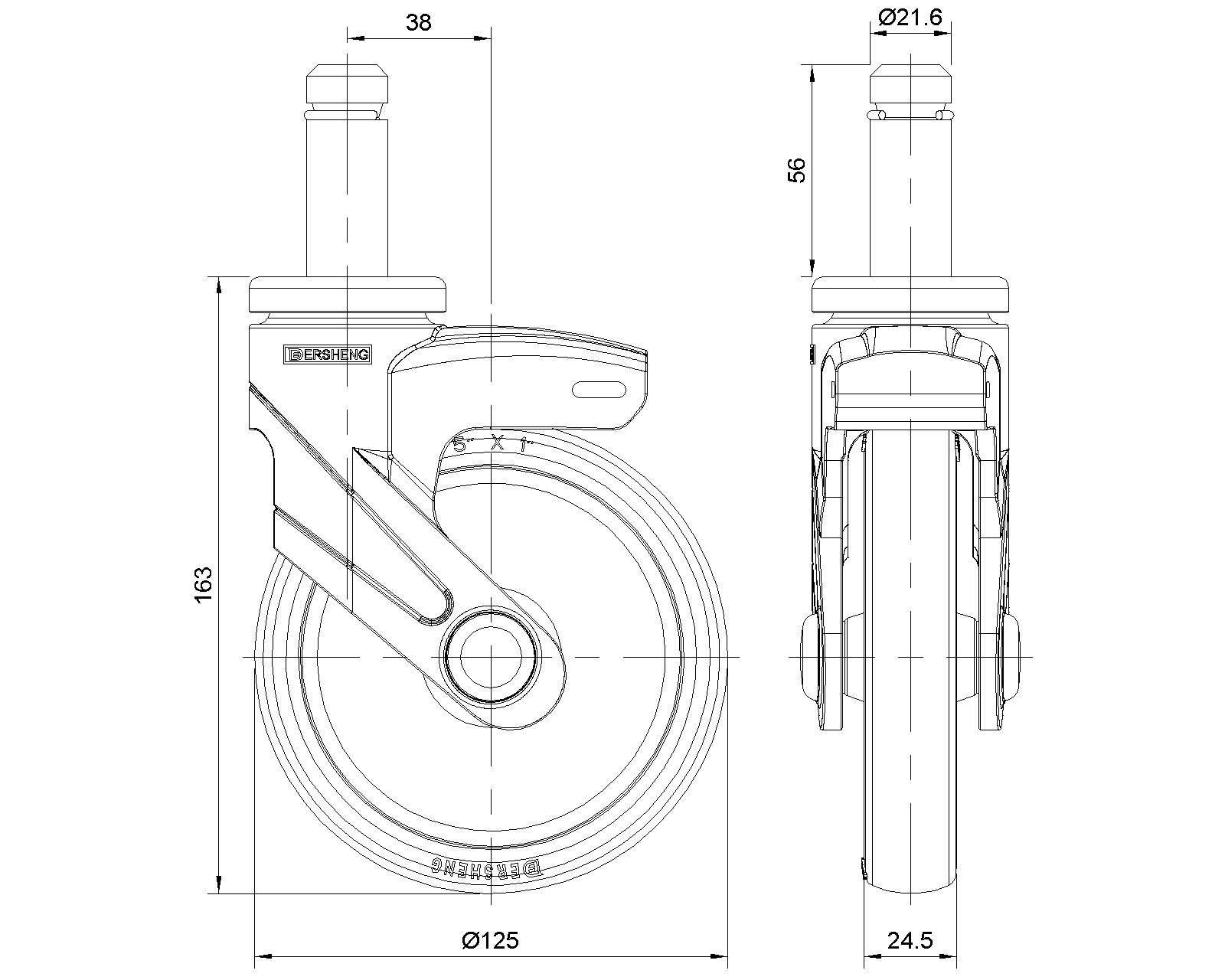 | Bánh xe cố định, đinh tán chốt—Ø21.6x56L với vòng chữ C Bánh xe màu đen gia cố bằng polyamide, lắp đặt bằng chốt Chống gỉ, chống ăn mòn, thẩm mỹ, tiết kiệm và xoay linh hoạt Lõi bánh xe bằng polypropylen chống va đập, bề mặt bánh xe bằng nhựa nhiệt dẻo đàn hồi (TPR) Bánh xe màu đen—loại ống trung tâm |